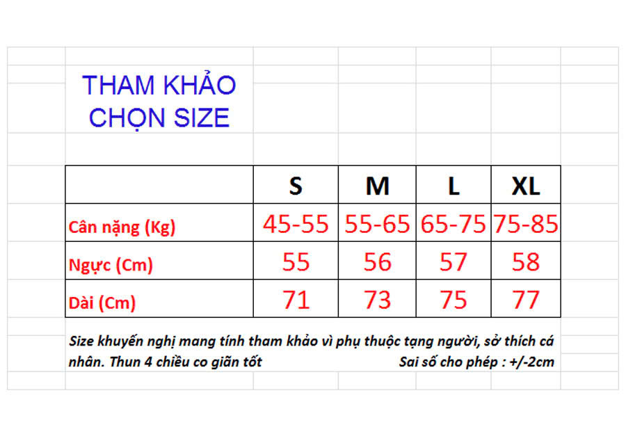 Size khuyến nghị chỉ mang tính tương đối để tham khảo vì còn phụ thuộc chiểu cao, tạng người, sở thích cá nhân mặc ôm, vừa hay rộng. Nhắn tin cho shop nếu cần tư vấn size nhé.