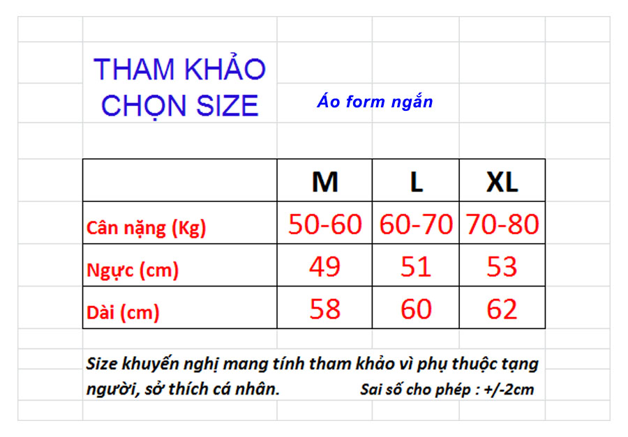 Size khuyến nghị chỉ mang tính tương đối để tham khảo vì còn phụ thuộc chiều cao, tạng người, sở thích cá nhân mặc ôm, vừa hay rộng. Nhắn tin cho shop nếu cần tư vấn size nhé.