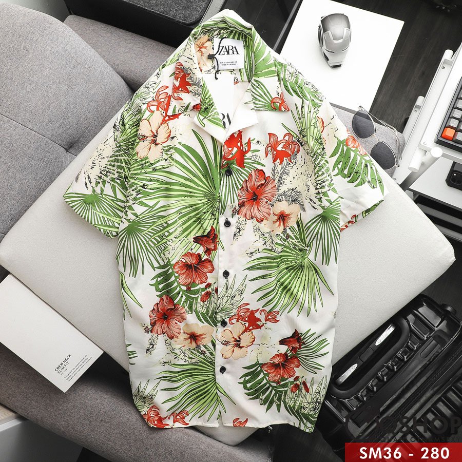 Áo sơ mi hoa lá đi biển đi chơi SM36