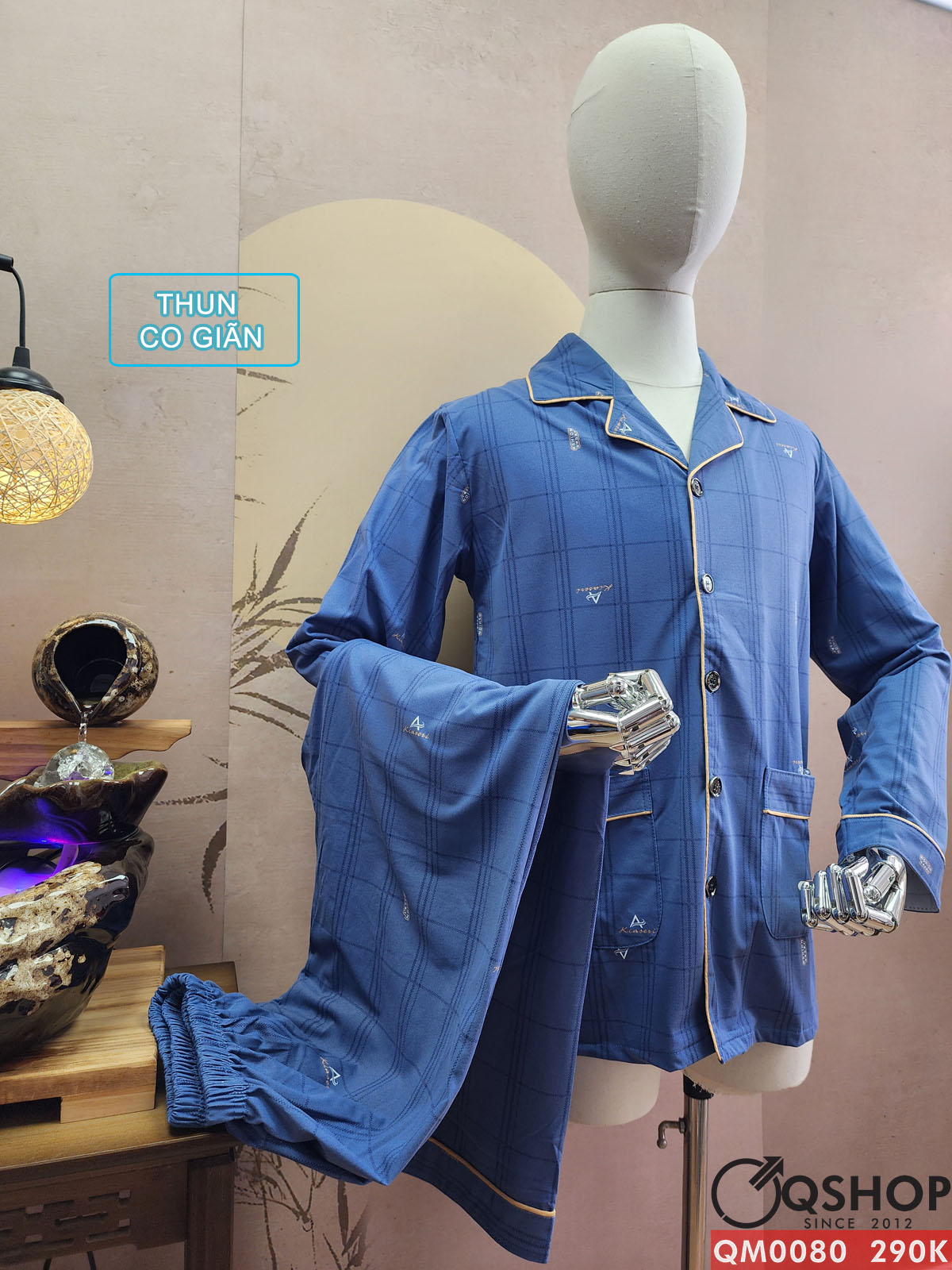 Bộ đồ ngủ pijama nam thun cotton quần dài tay dài mặc nhà mặc ngủ thoải mái QM0080