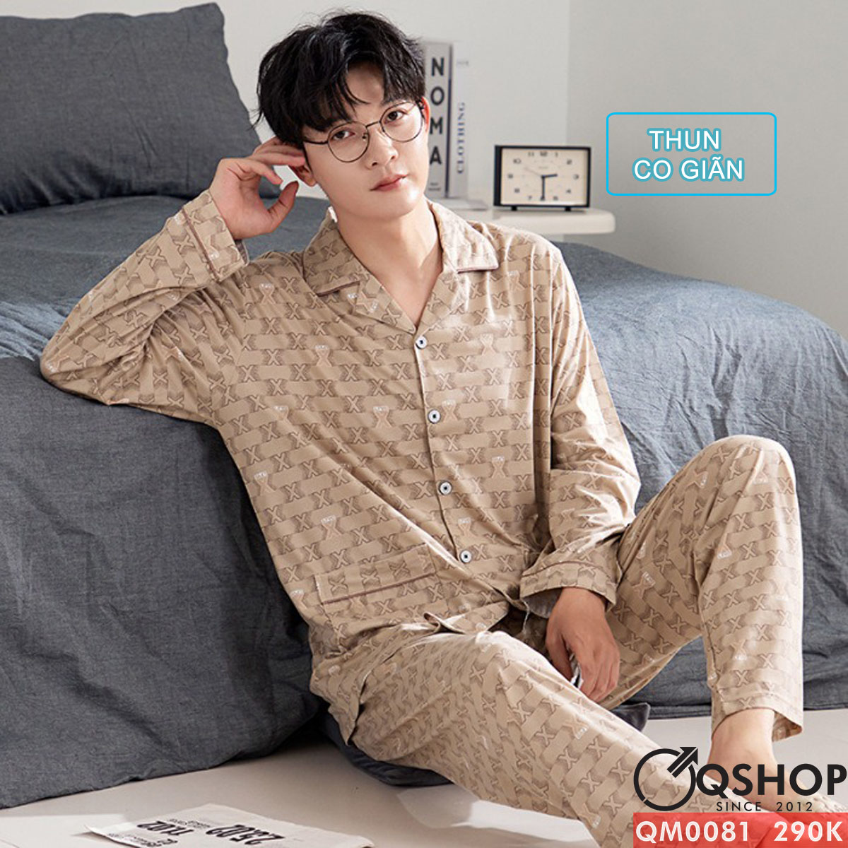 Bộ đồ ngủ pijama nam thun cotton quần dài tay dài mặc nhà mặc ngủ thoải mái QM0081