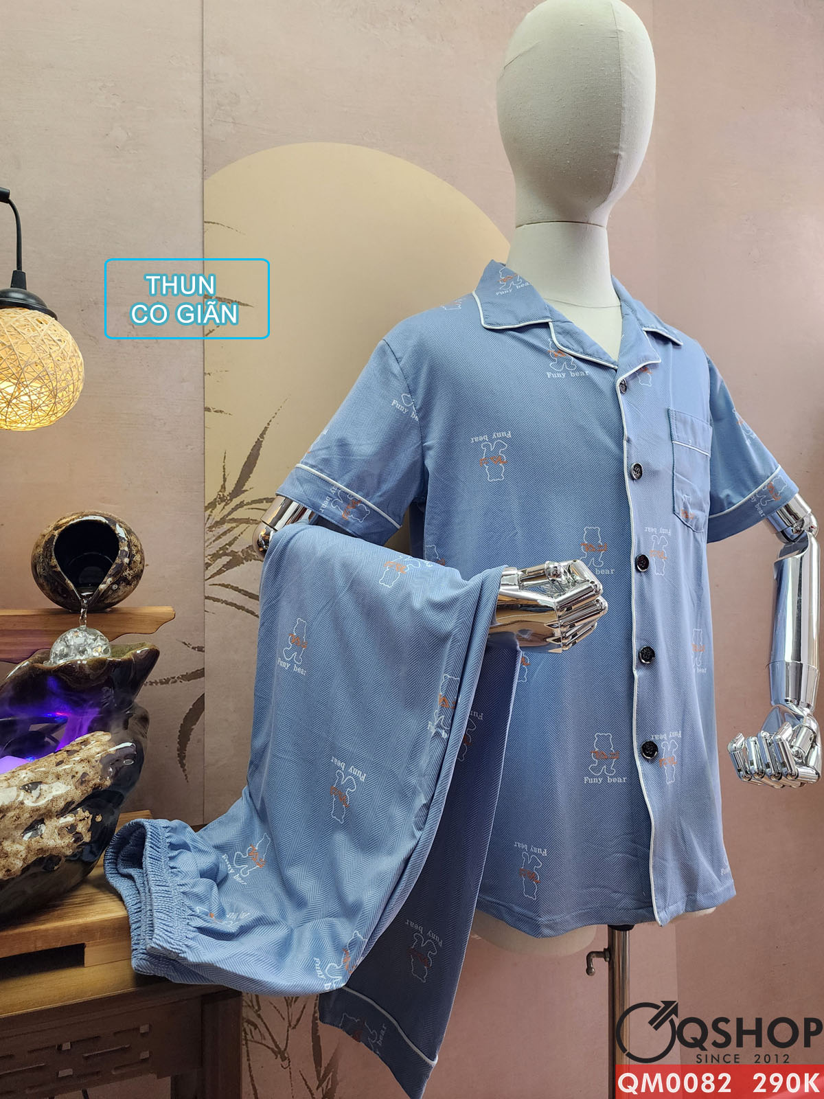 Bộ đồ ngủ Pijama nam thun cotton quần dài tay ngắn mặc nhà mặc ngủ thoải mái QM0082