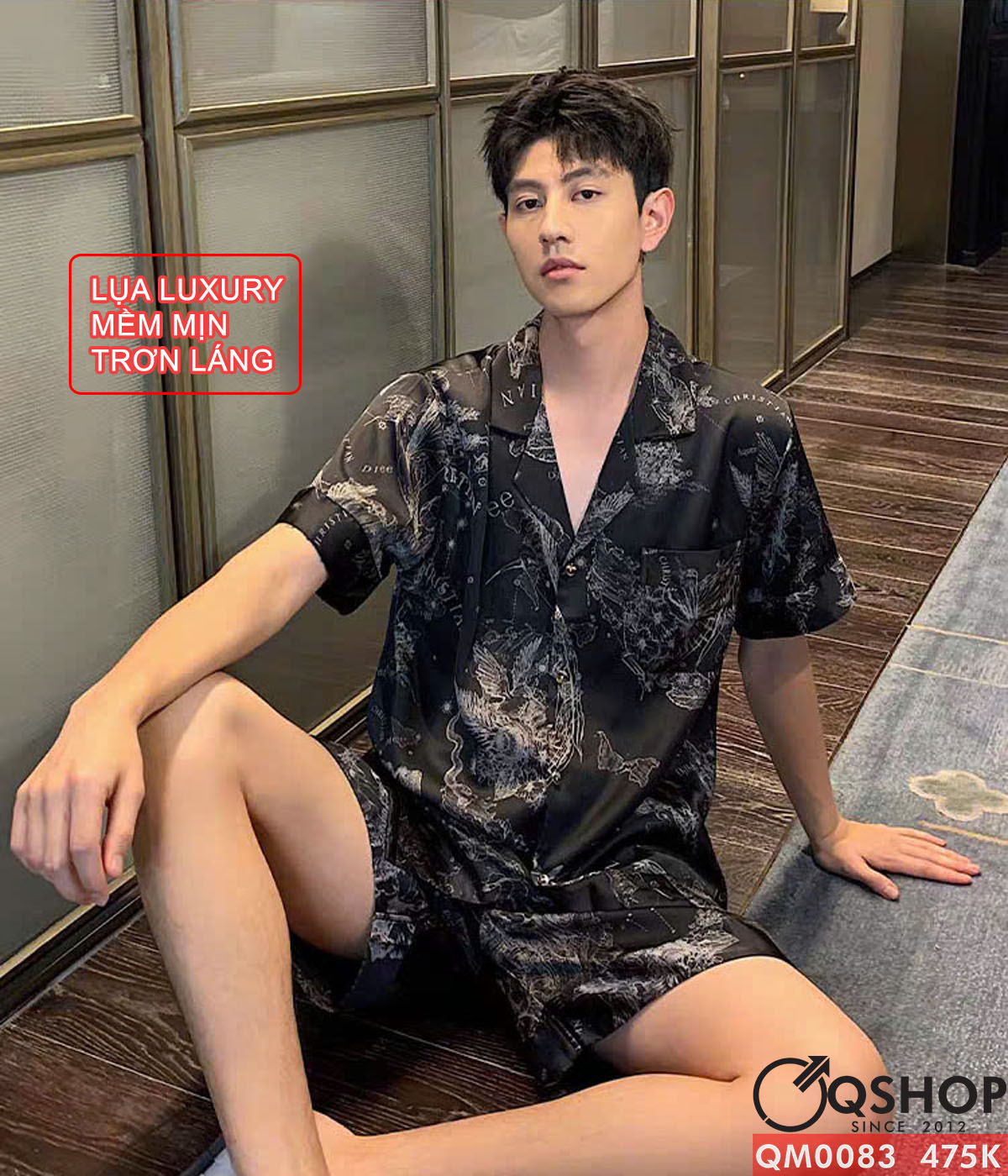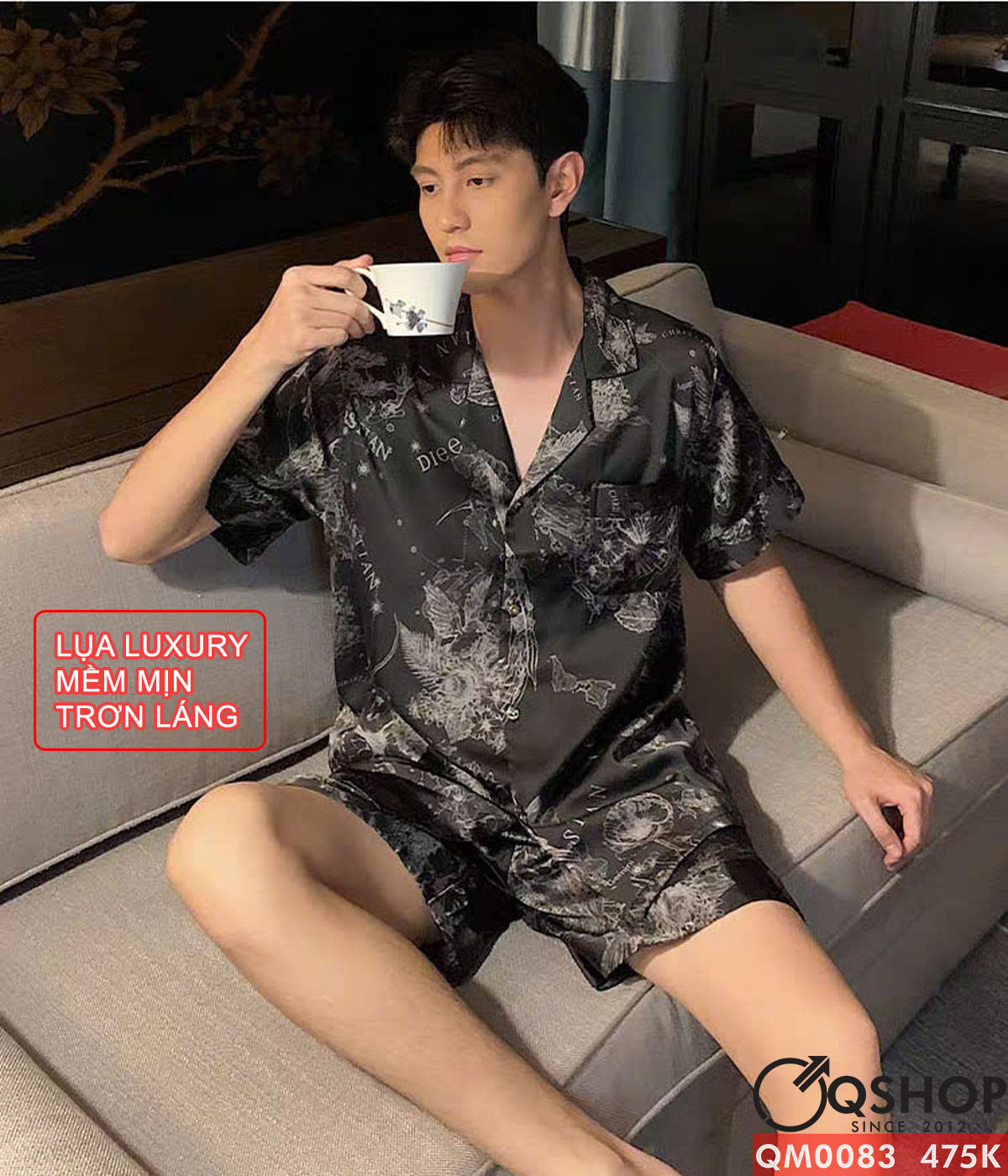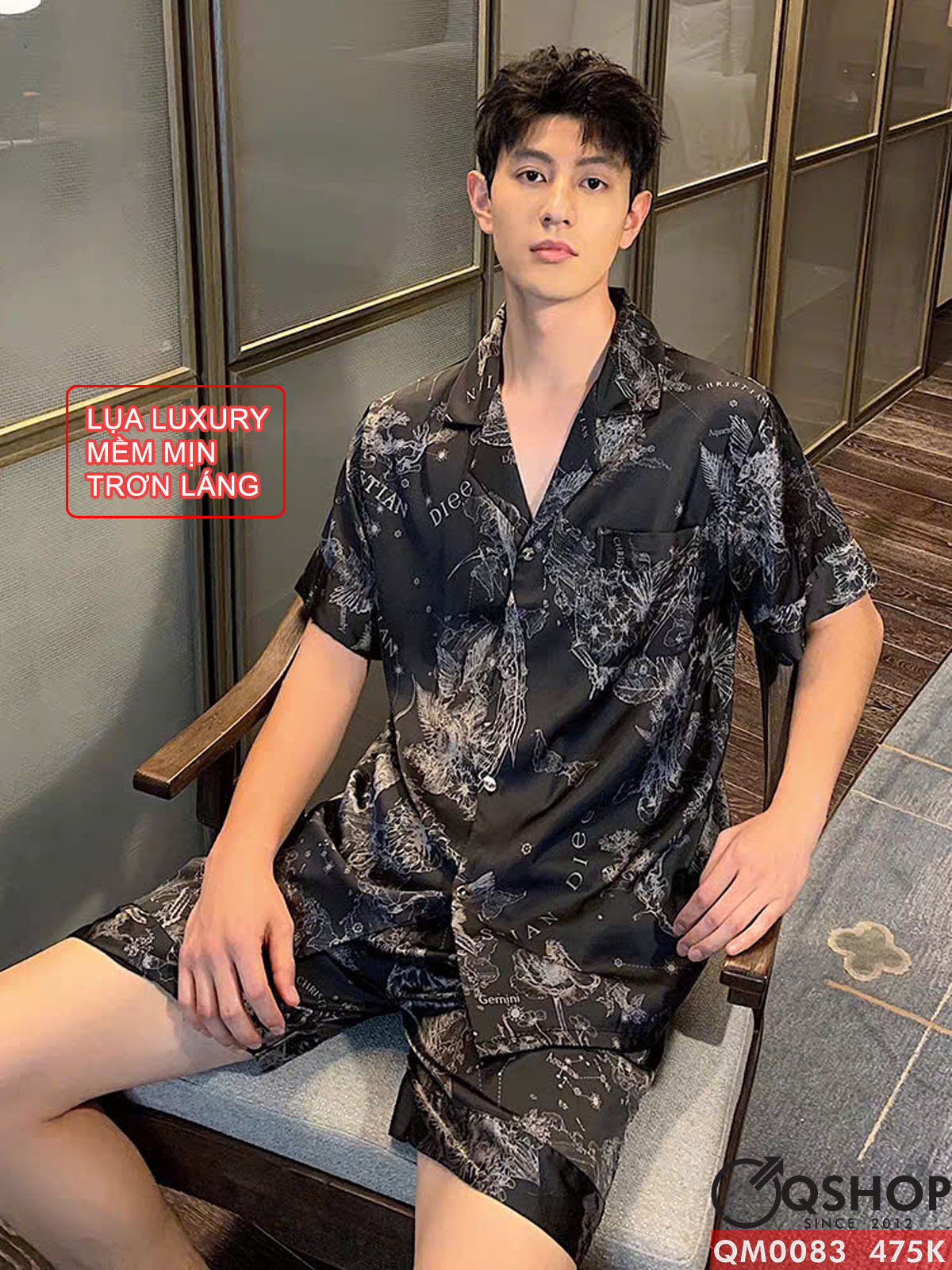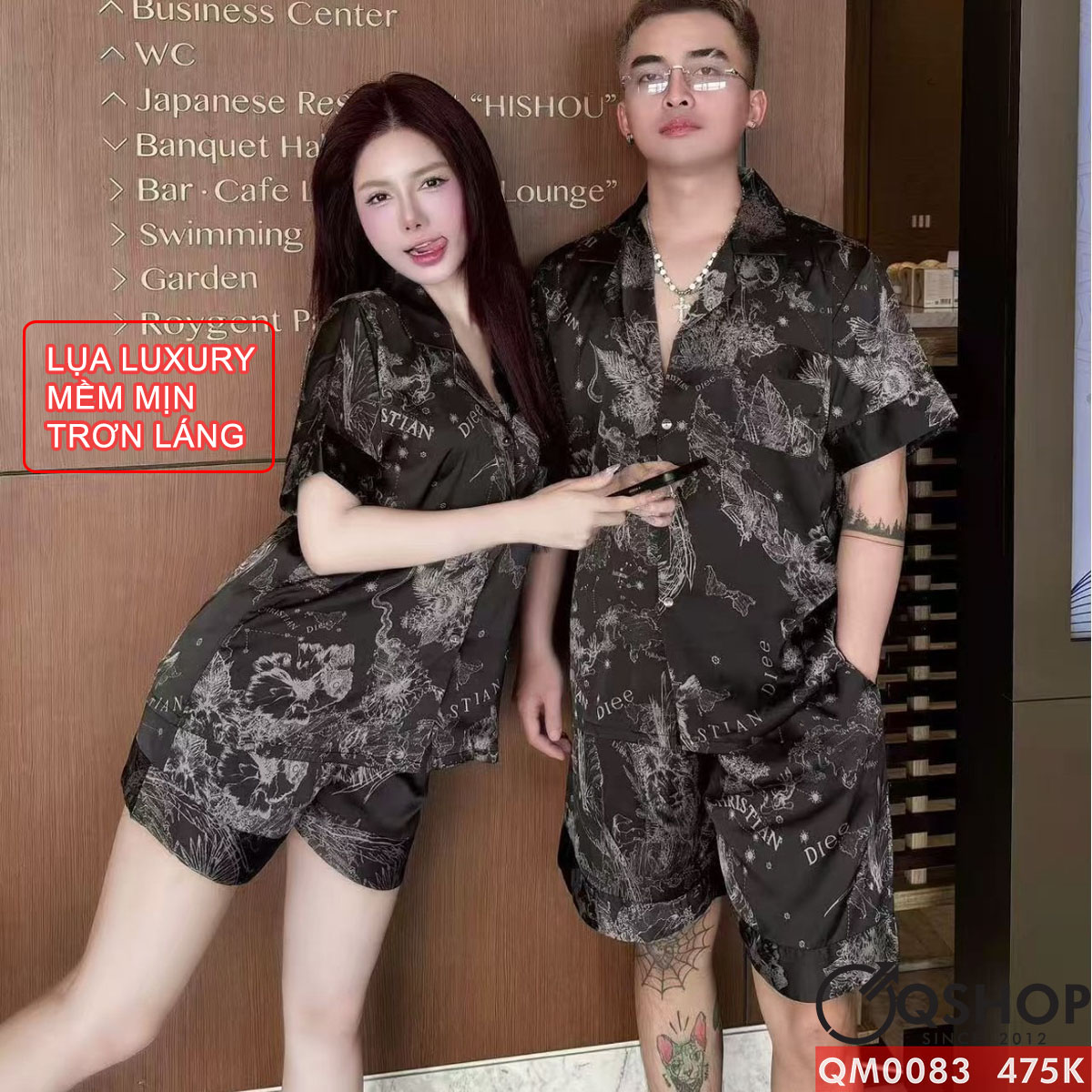 Bộ đồ ngủ pijama cặp đôi lụa luxury cao cấp quần ngắn tay ngắn sang trọng QM0083