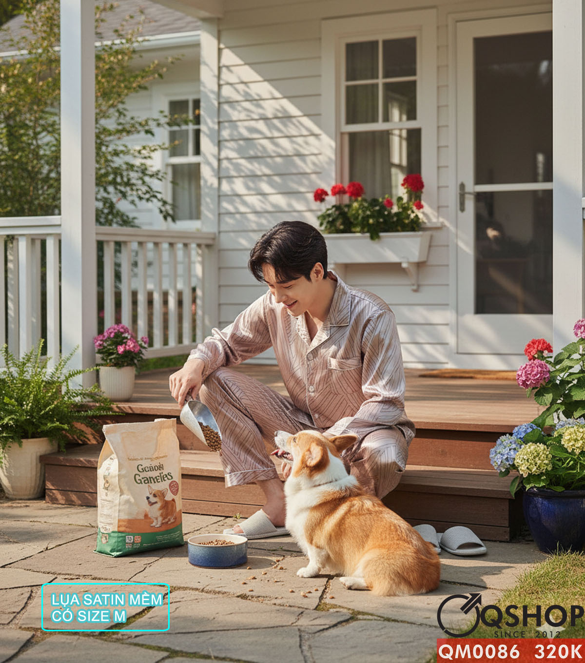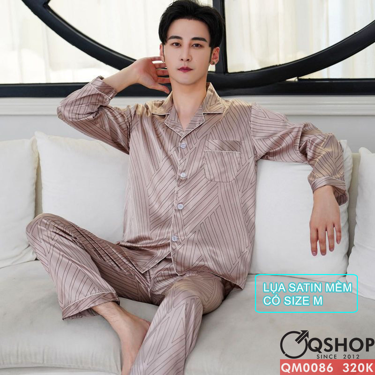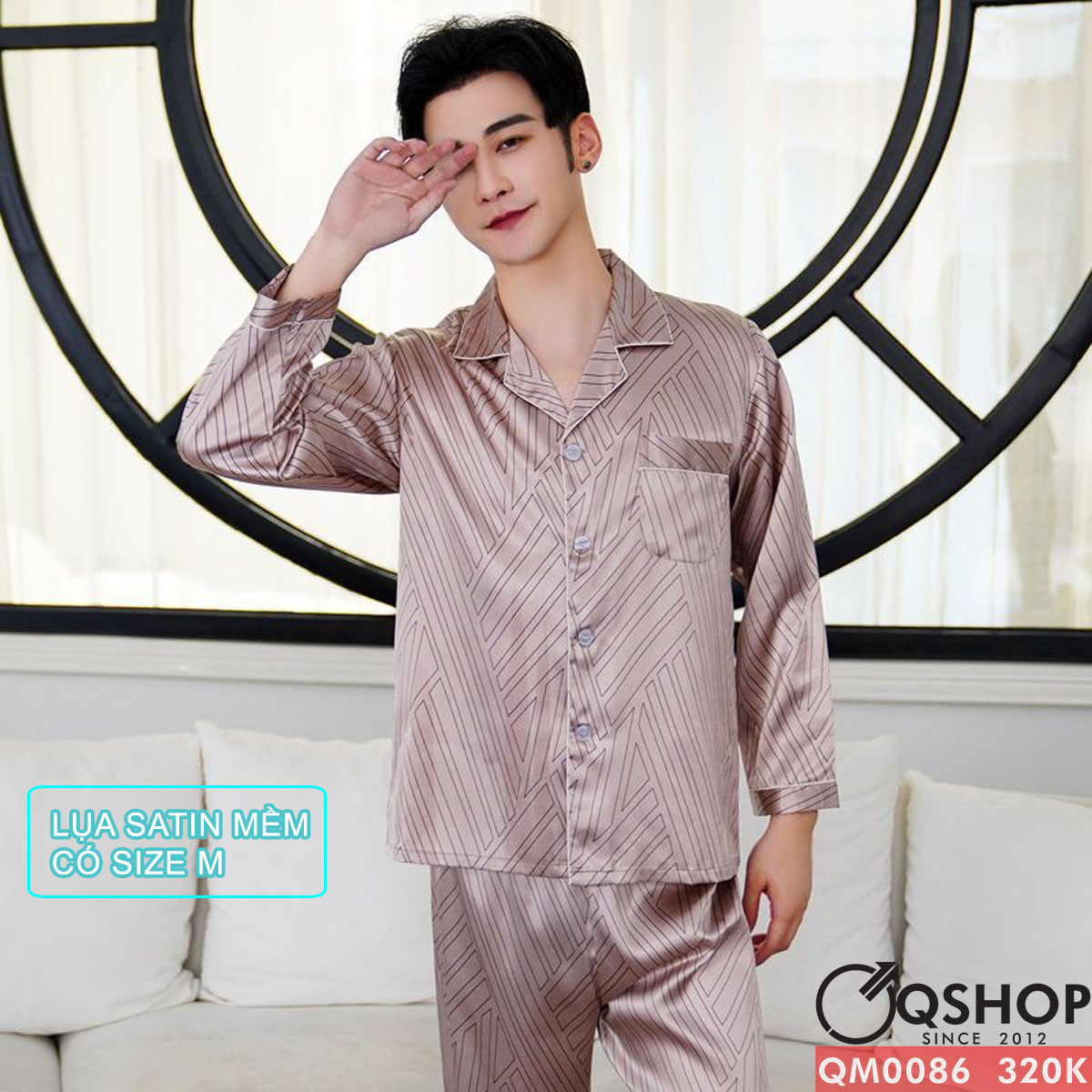 Bộ đồ ngủ pijama nam lụa satin quần dài tay dài mặc nhà mặc ngủ thoải mái QM0086
