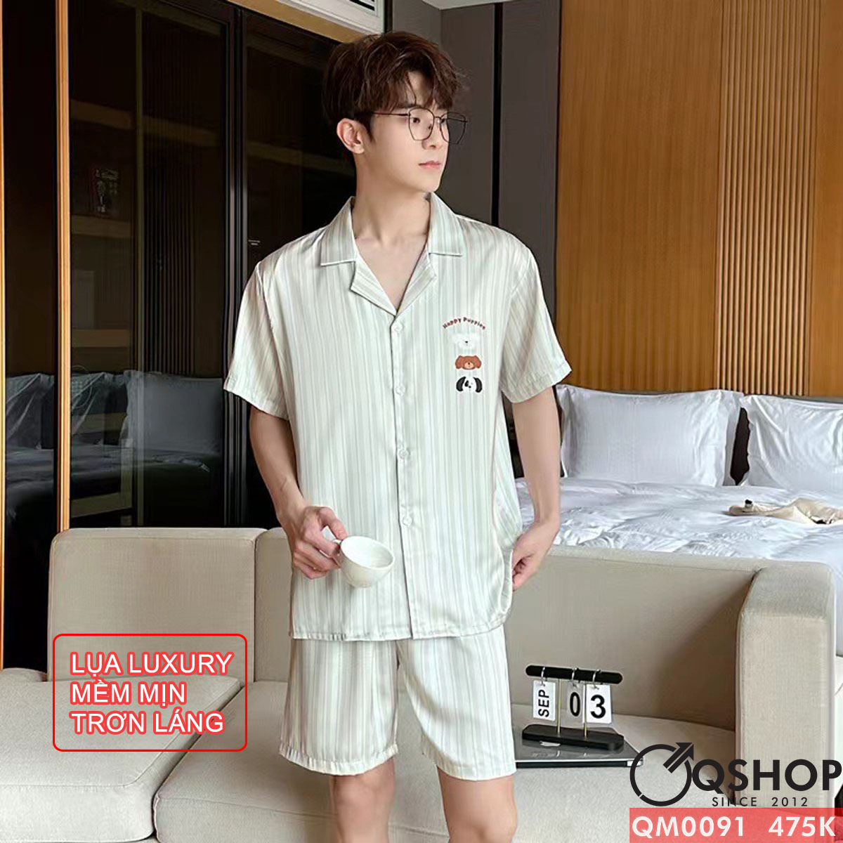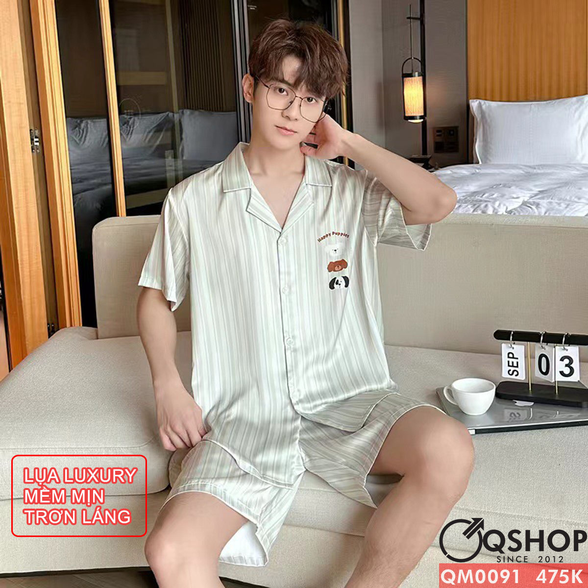 Bộ đồ ngủ pijama cặp đôi lụa luxury cao cấp quần ngắn tay ngắn sang trọng QM0091