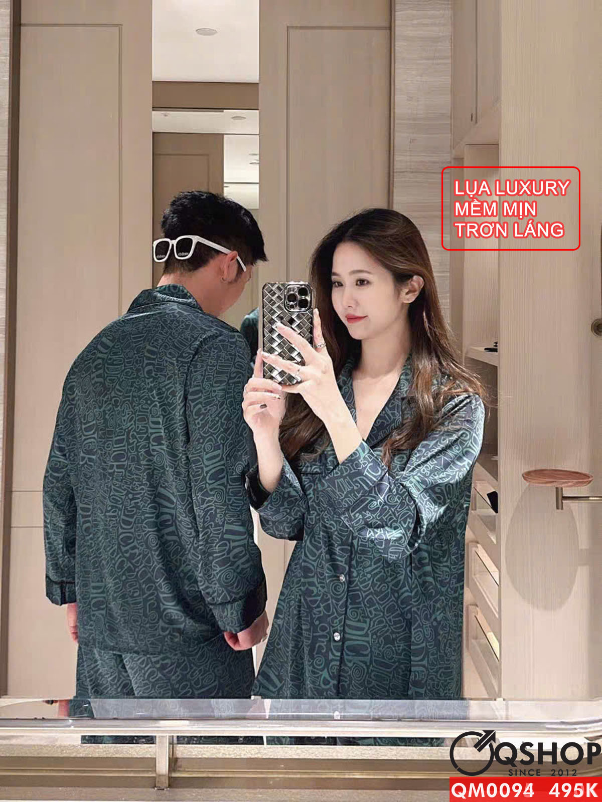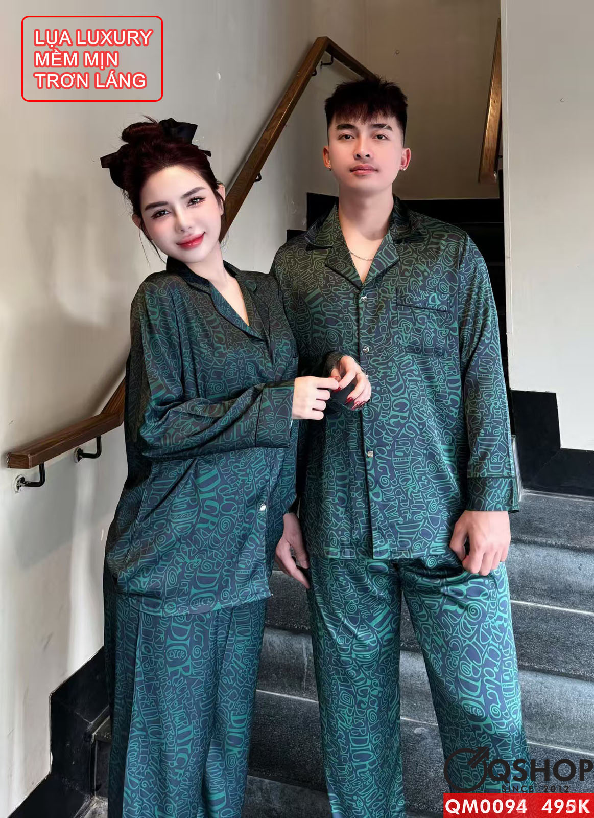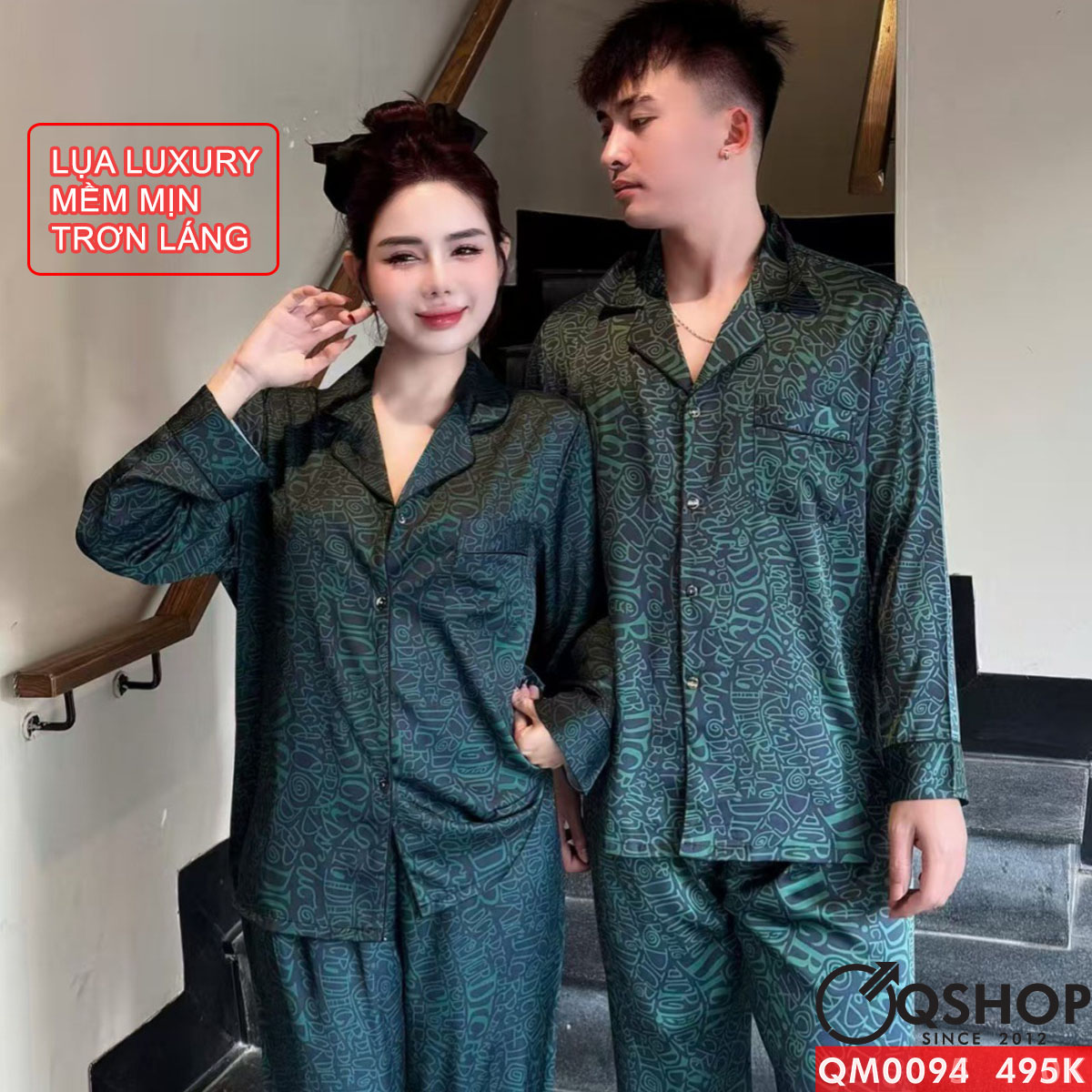 Bộ đồ ngủ pijama cặp đôi lụa luxury cao cấp quần dài tay dài sang trọng QM0094