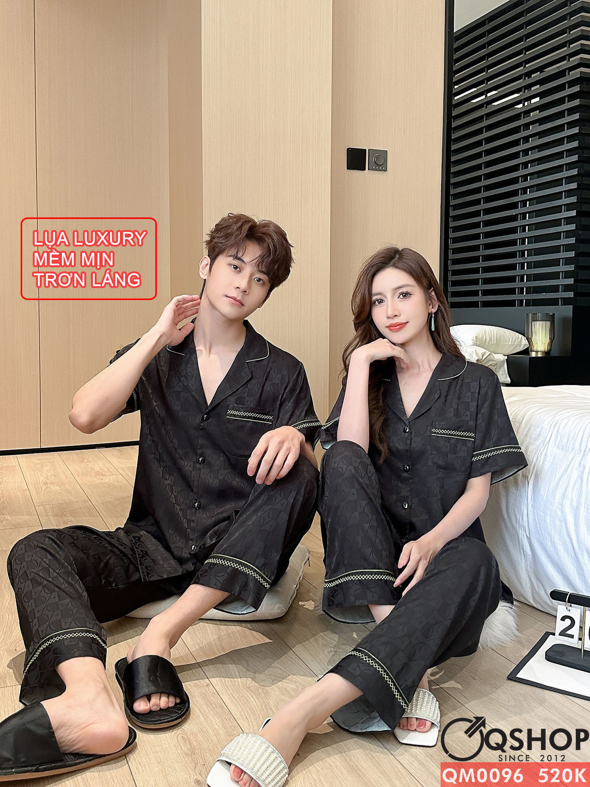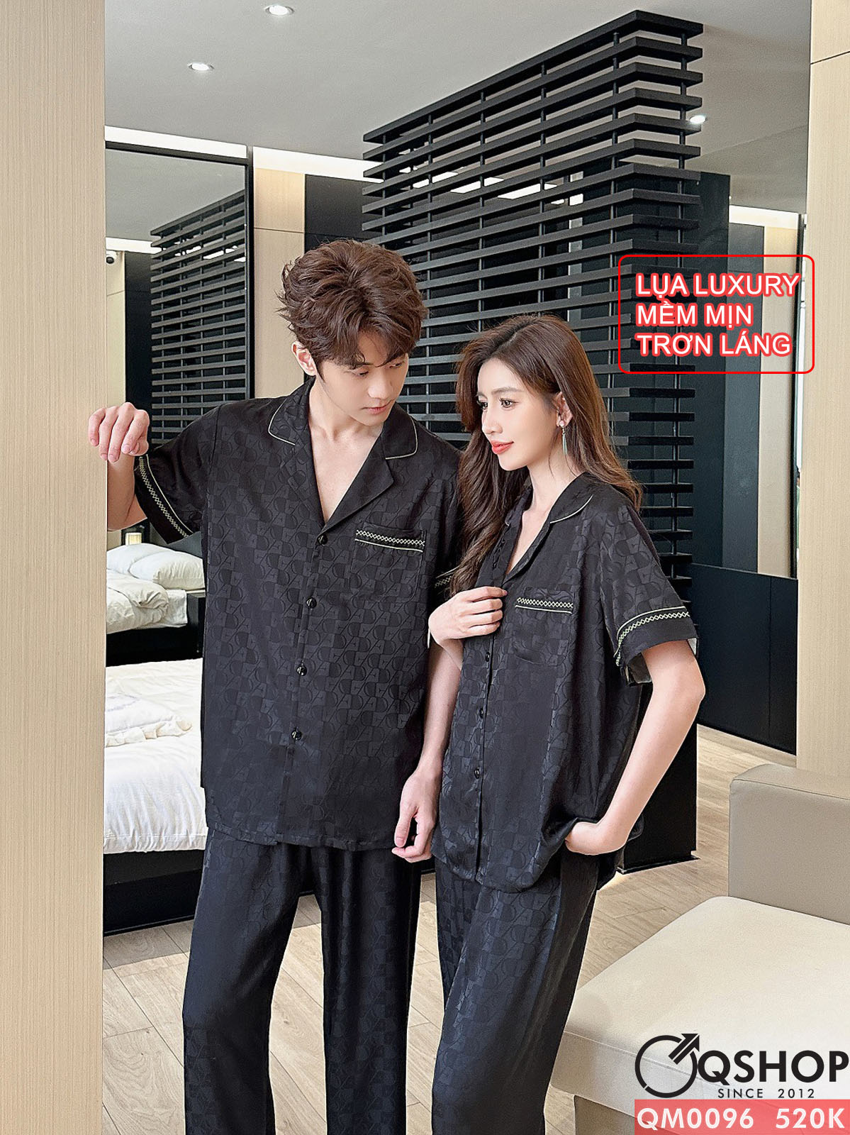 Bộ đồ ngủ pijama cặp đôi lụa luxury cao cấp quần dài tay ngắn sang trọng QM0096