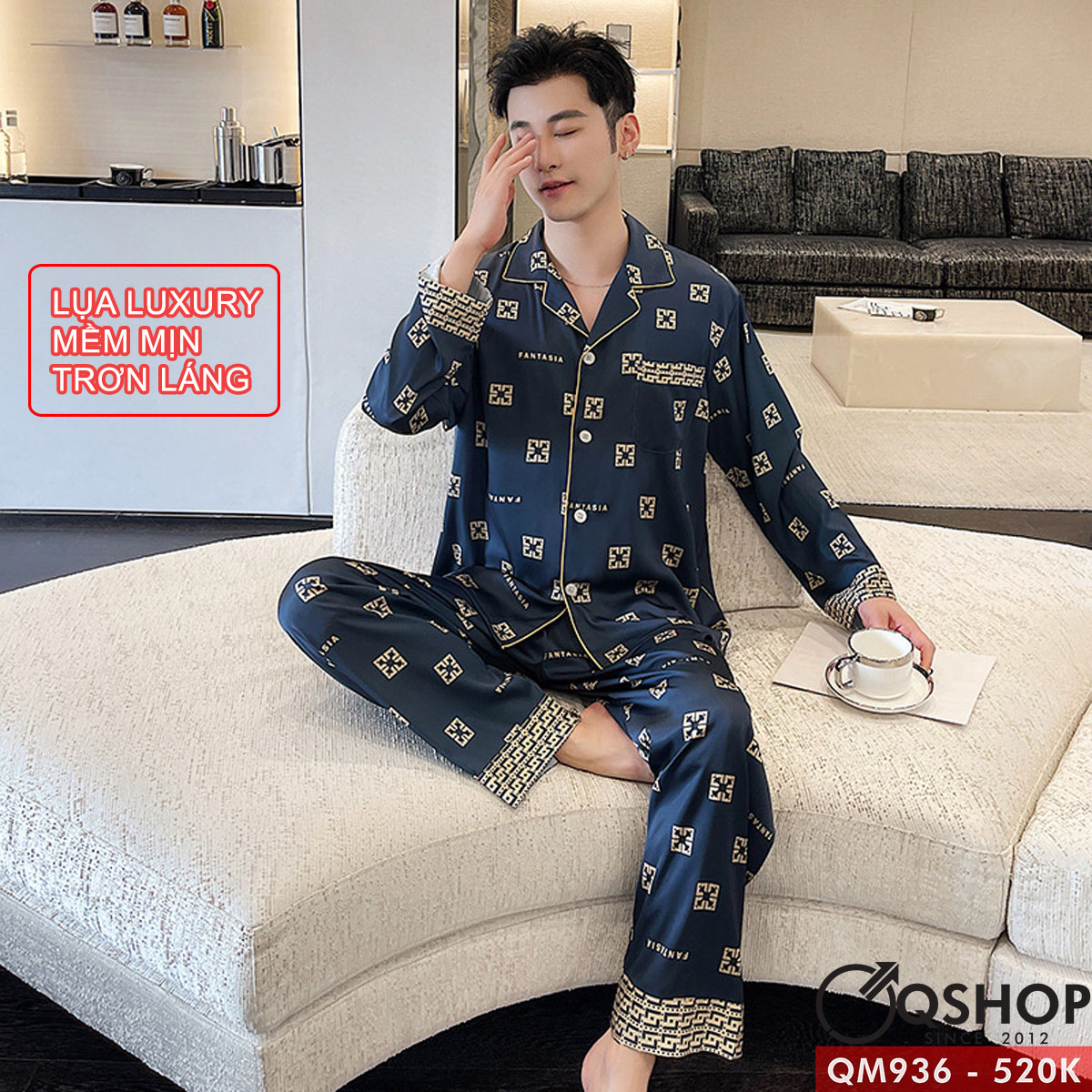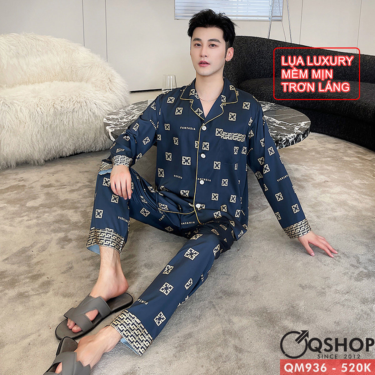Bộ pijama nam cao cấp tay dài quần dài lụa Luxury mềm mịn QM936