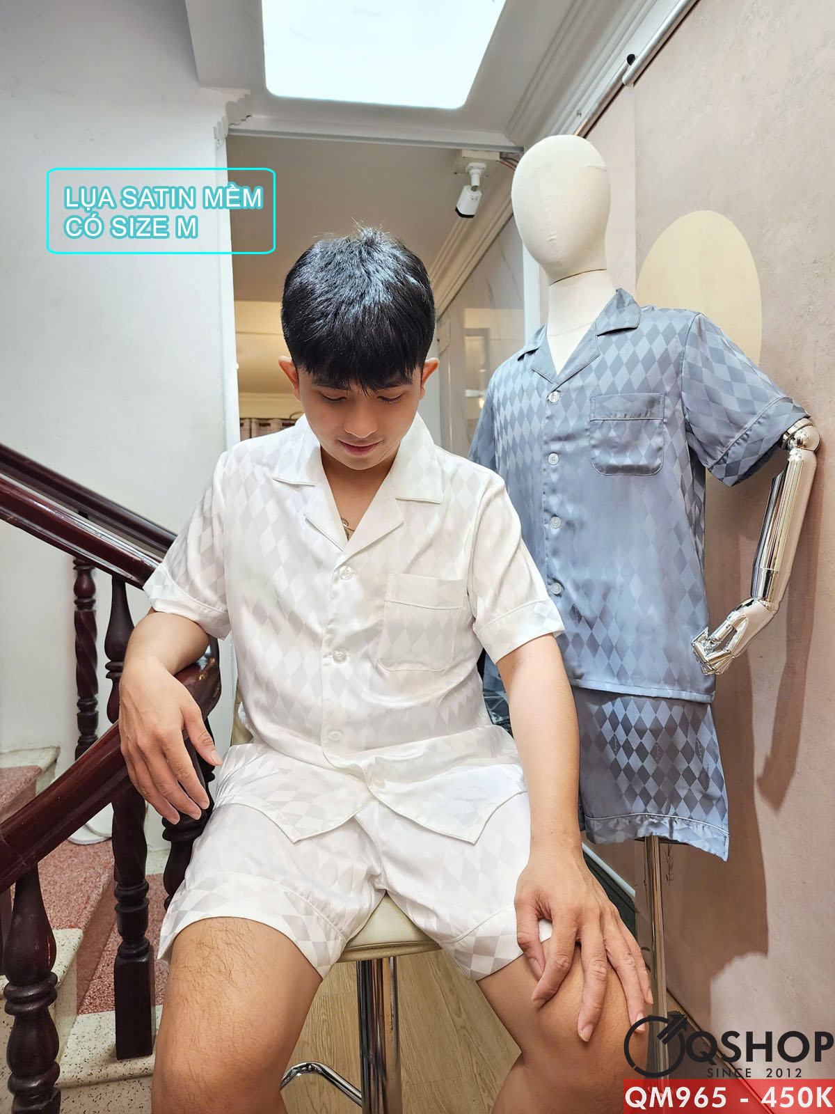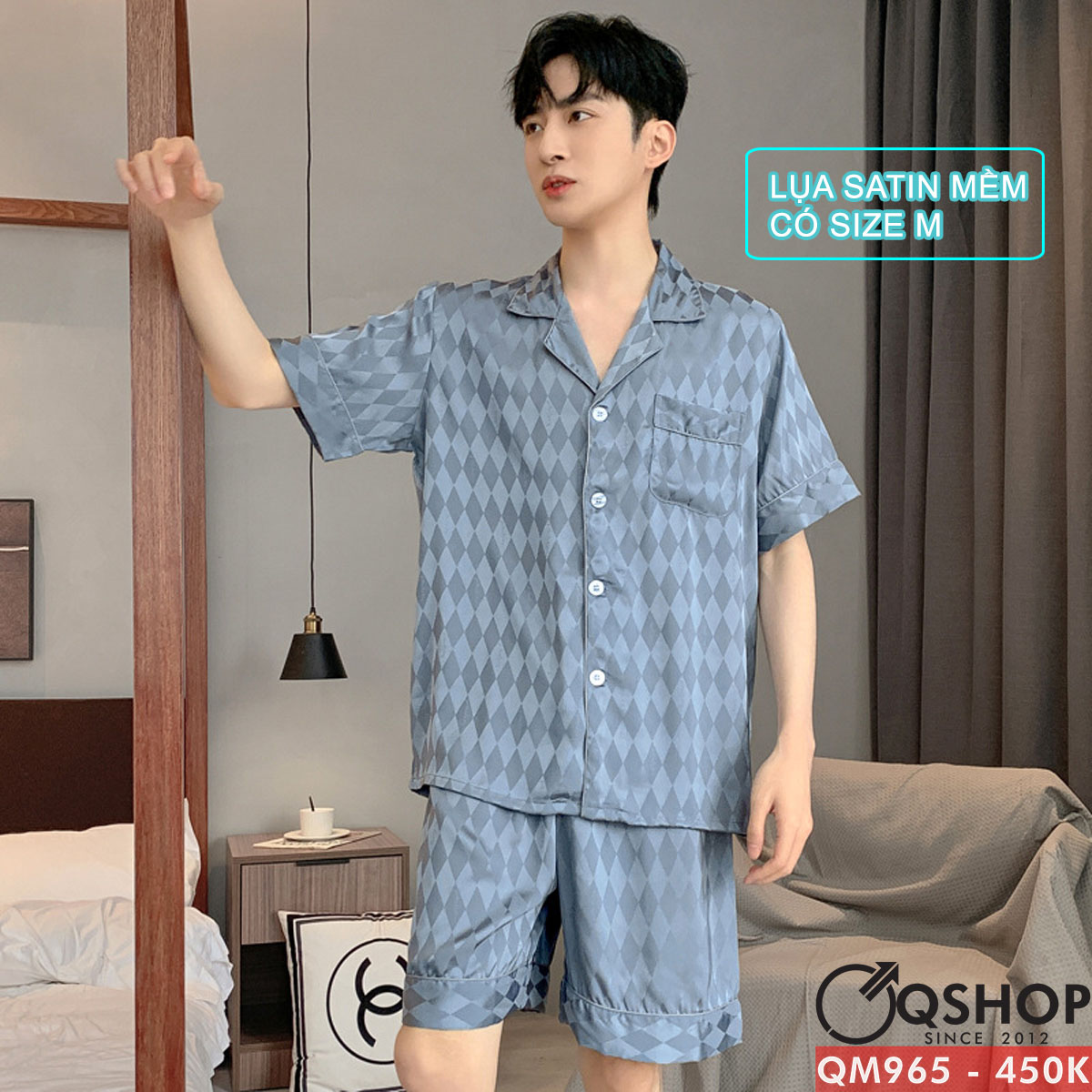 Bộ đồ ngủ nam quần ngắn tay ngắn lụa satin mềm mịn QM965