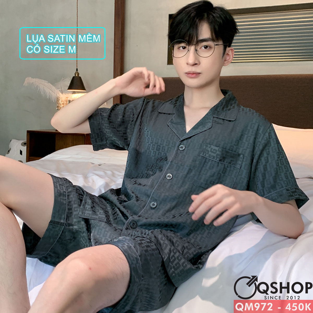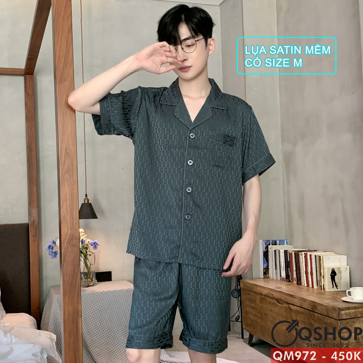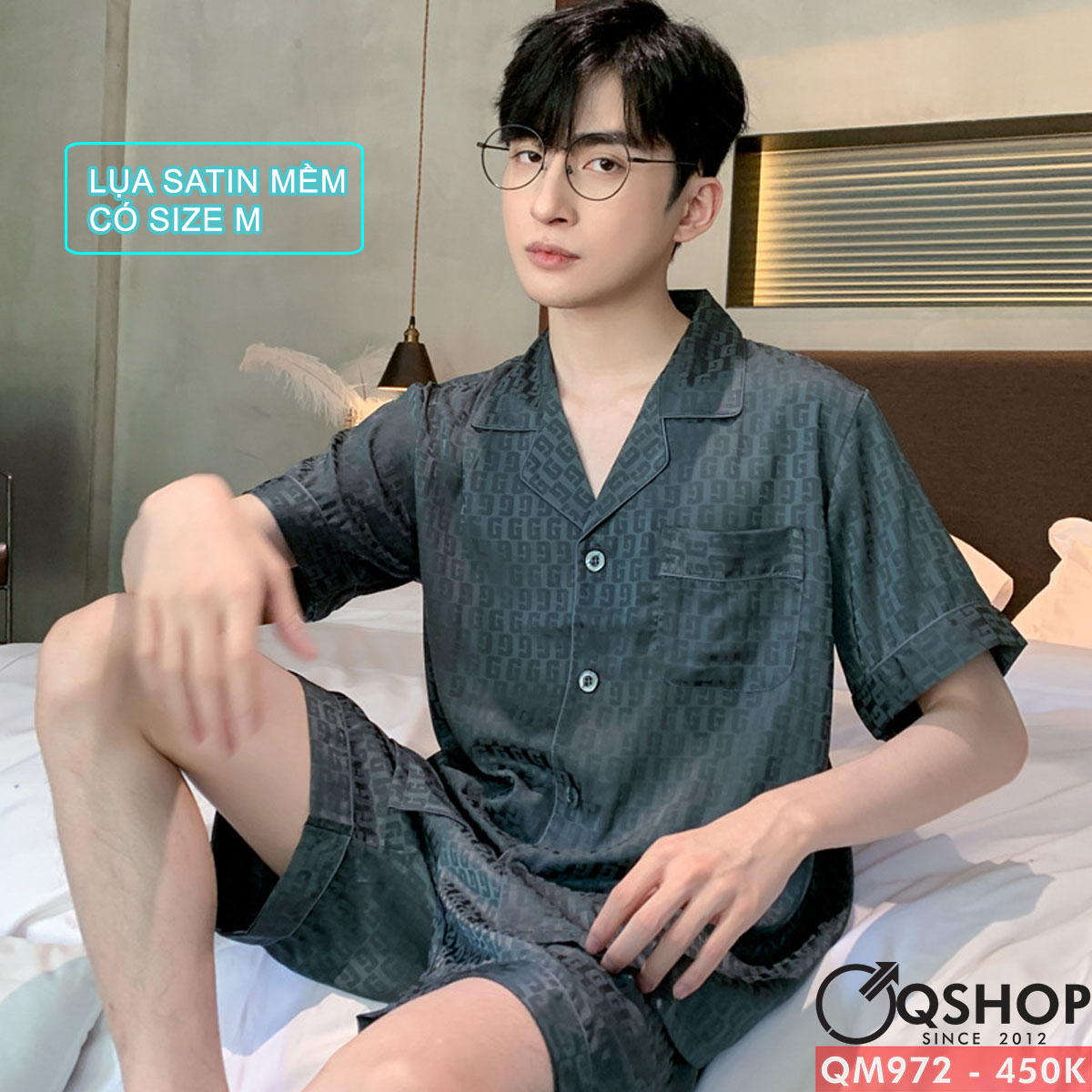 Bộ đồ ngủ nam quần ngắn tay ngắn lụa satin mềm mịn QM972