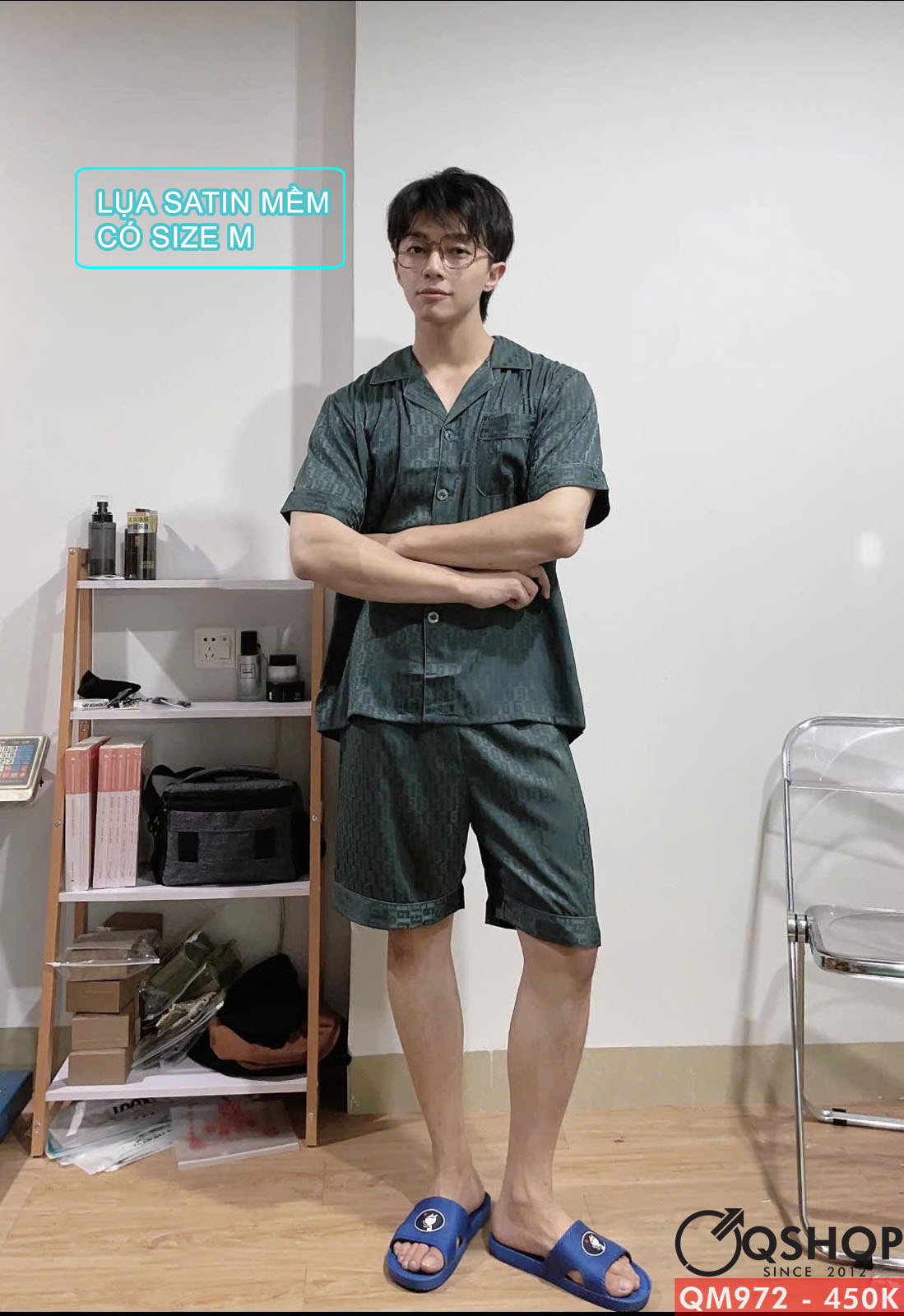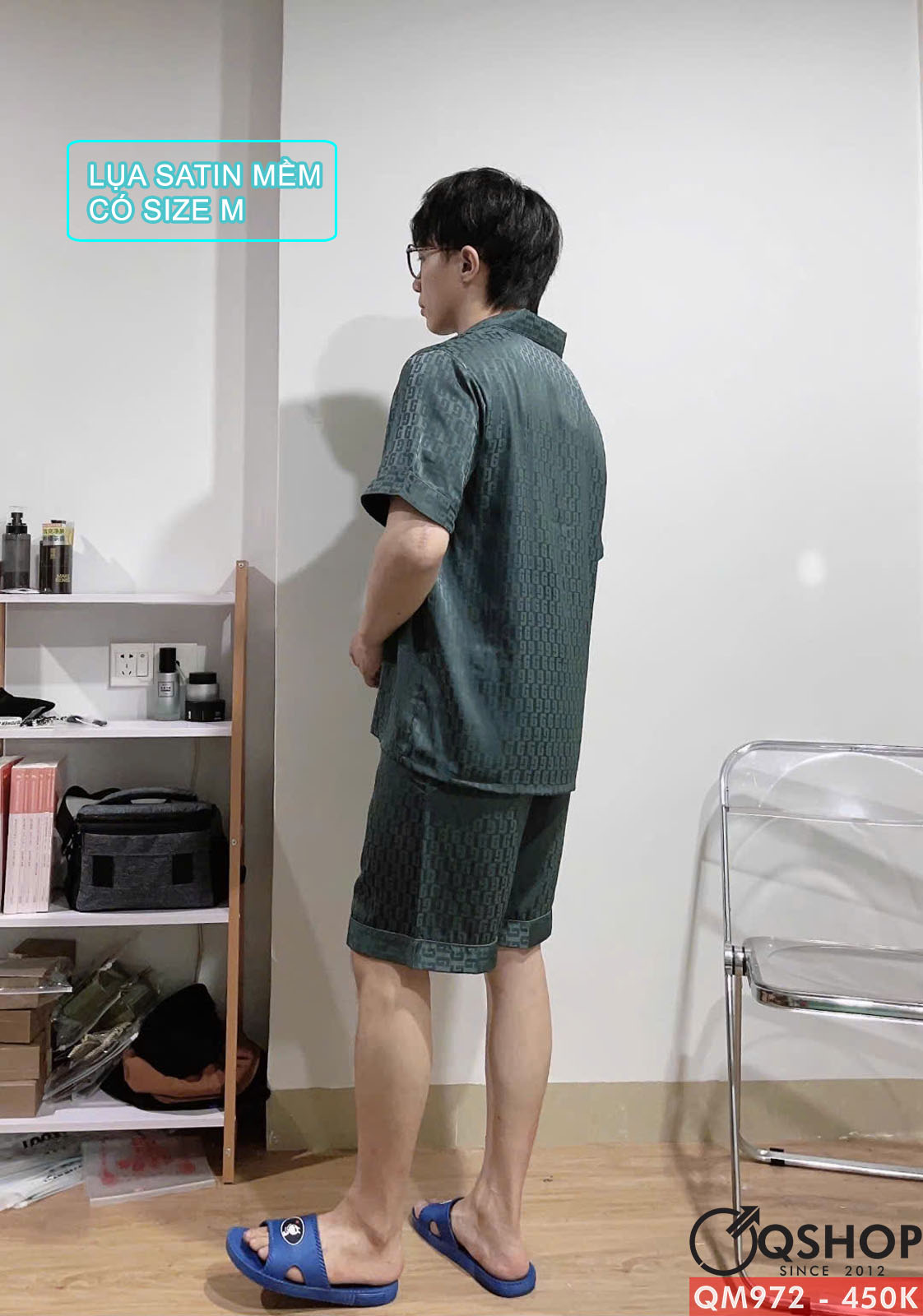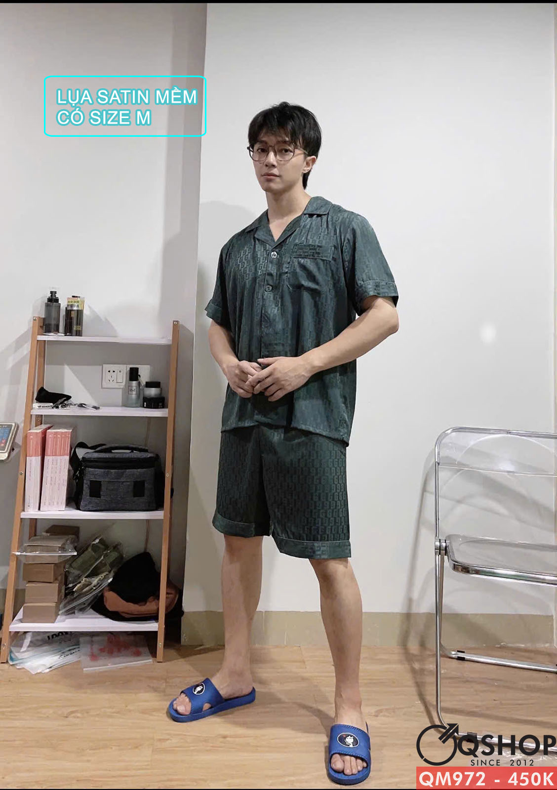 Bộ đồ ngủ nam quần ngắn tay ngắn lụa satin mềm mịn QM972