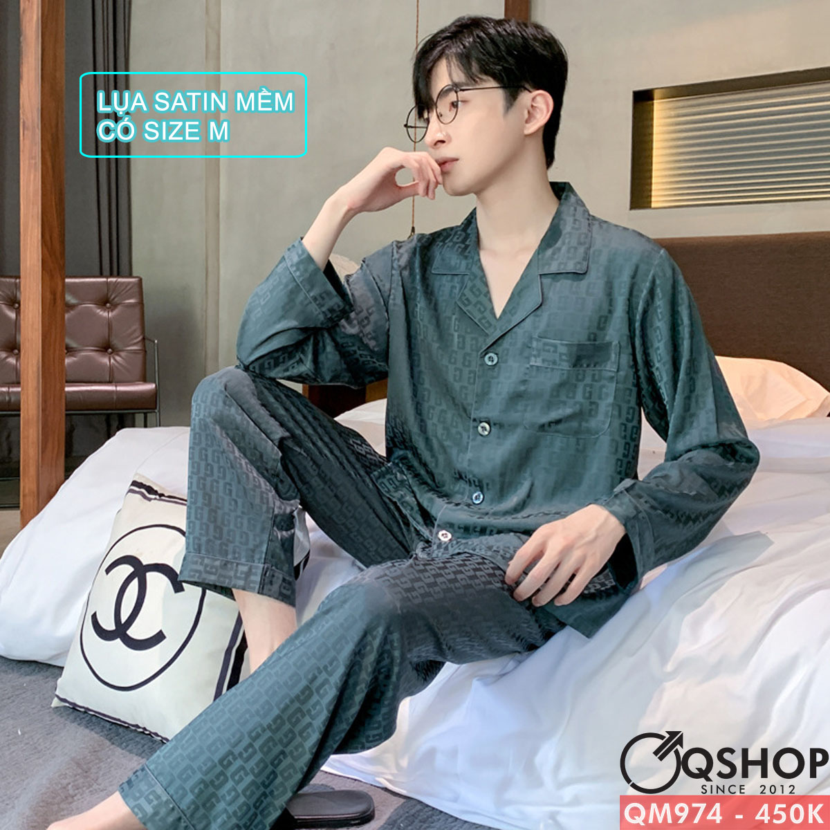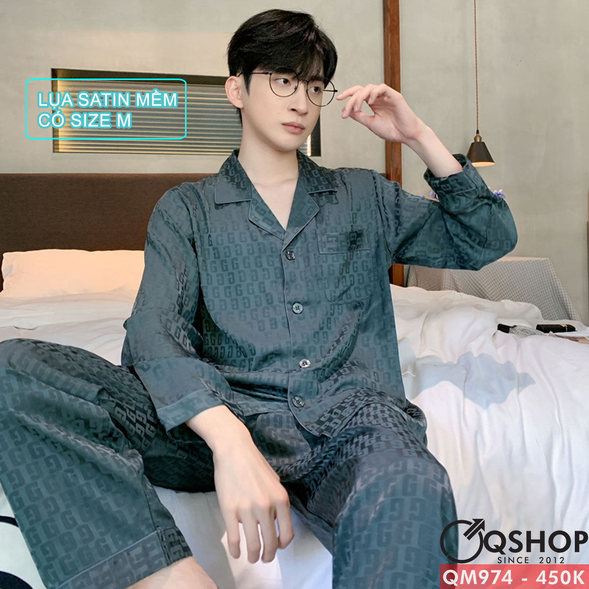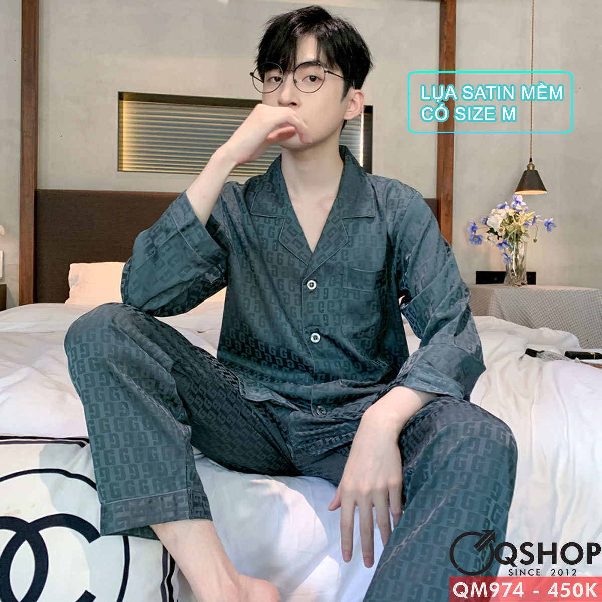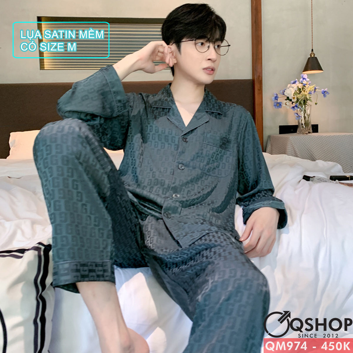 Bộ đồ ngủ nam quần dài tay dài lụa satin mềm mịn QM974