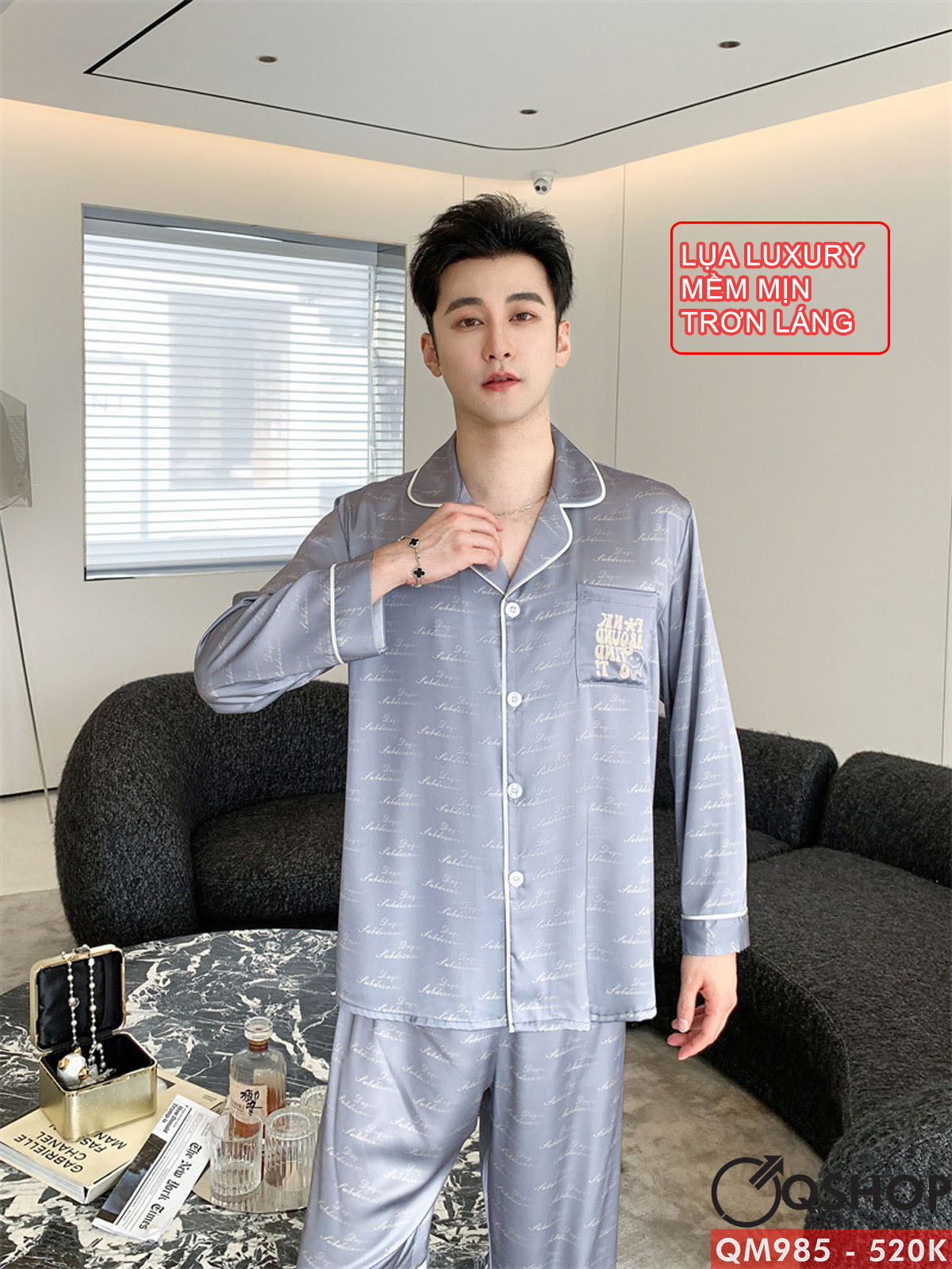 Bộ đồ ngủ Pijama nam lụa luxury mềm mịn sang trọng tay dài quần dài mặc nhà mặc ngủ thoải mái QM985