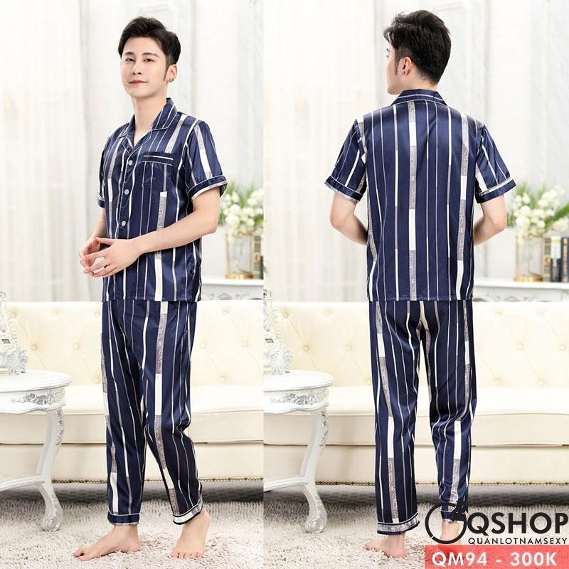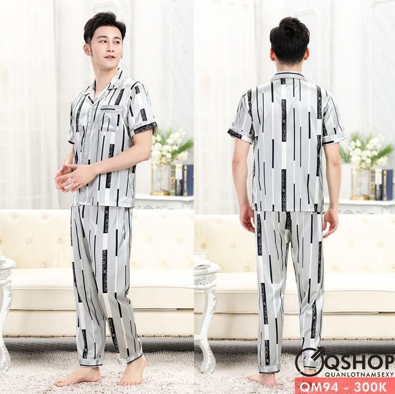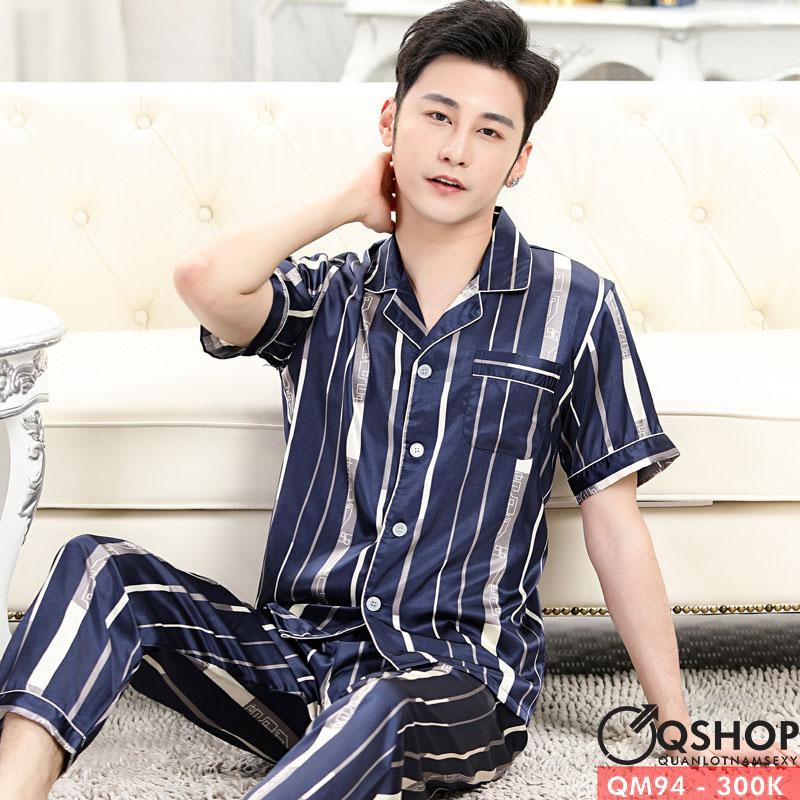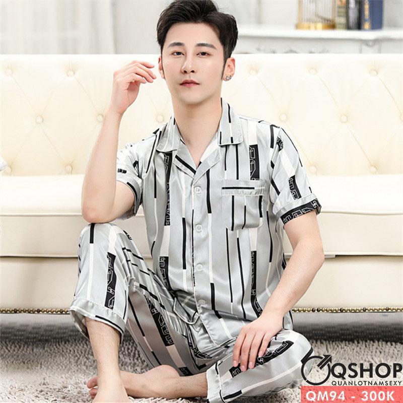 Bộ pijama nam quần dài tay ngắn lụa satin mềm mặc nhà mặc ngủ QM94