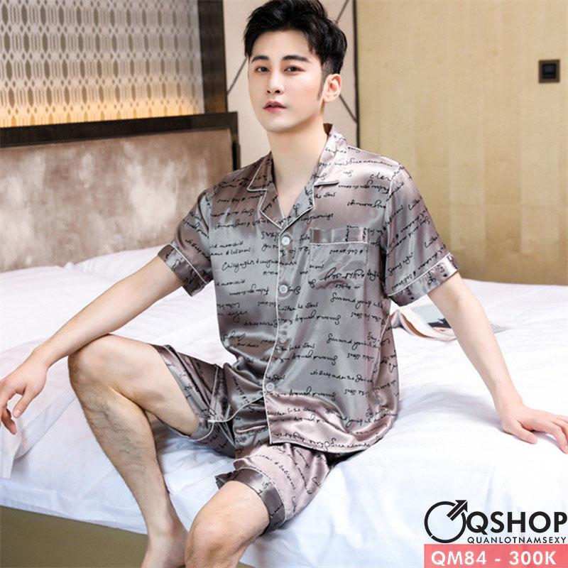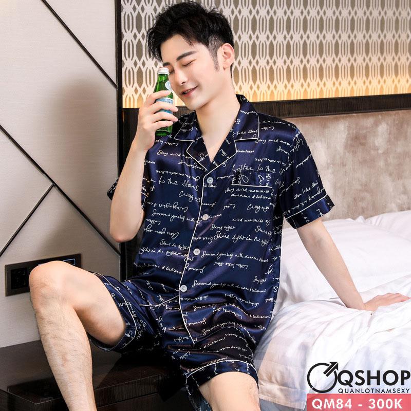 Bộ pijama nam quần ngắn tay ngắn lụa satin mềm mặc nhà mặc ngủ QM84