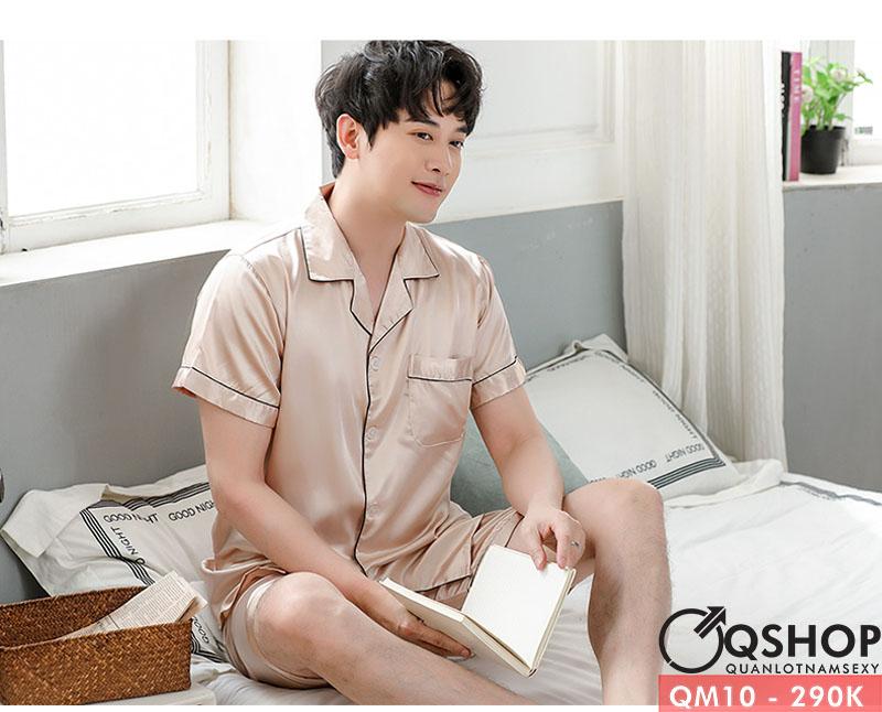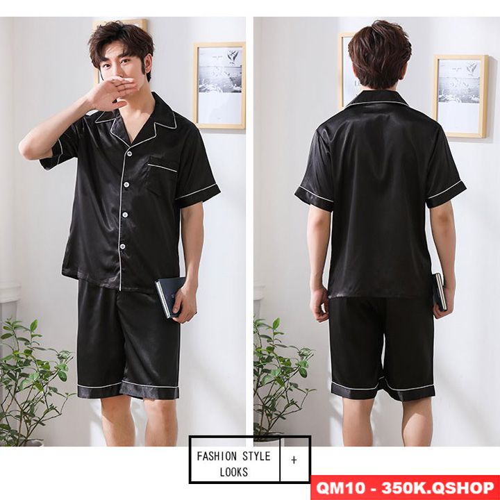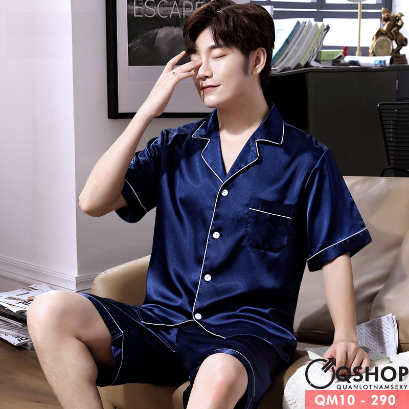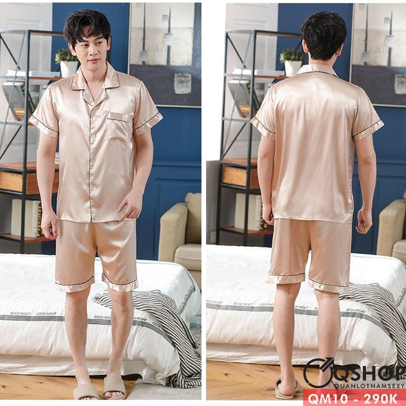 Bộ pijama nam quần ngắn tay ngắn lụa satin mềm mặc nhà mặc ngủ QM10