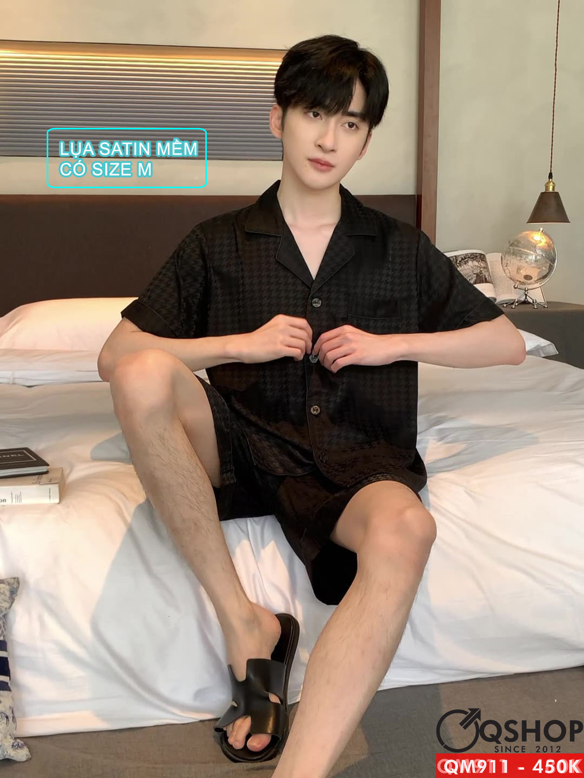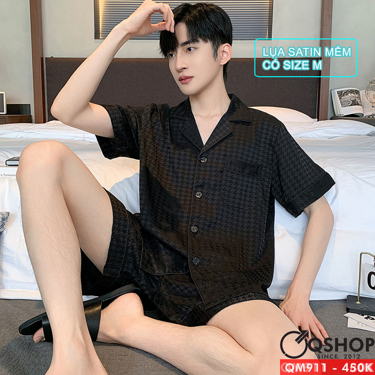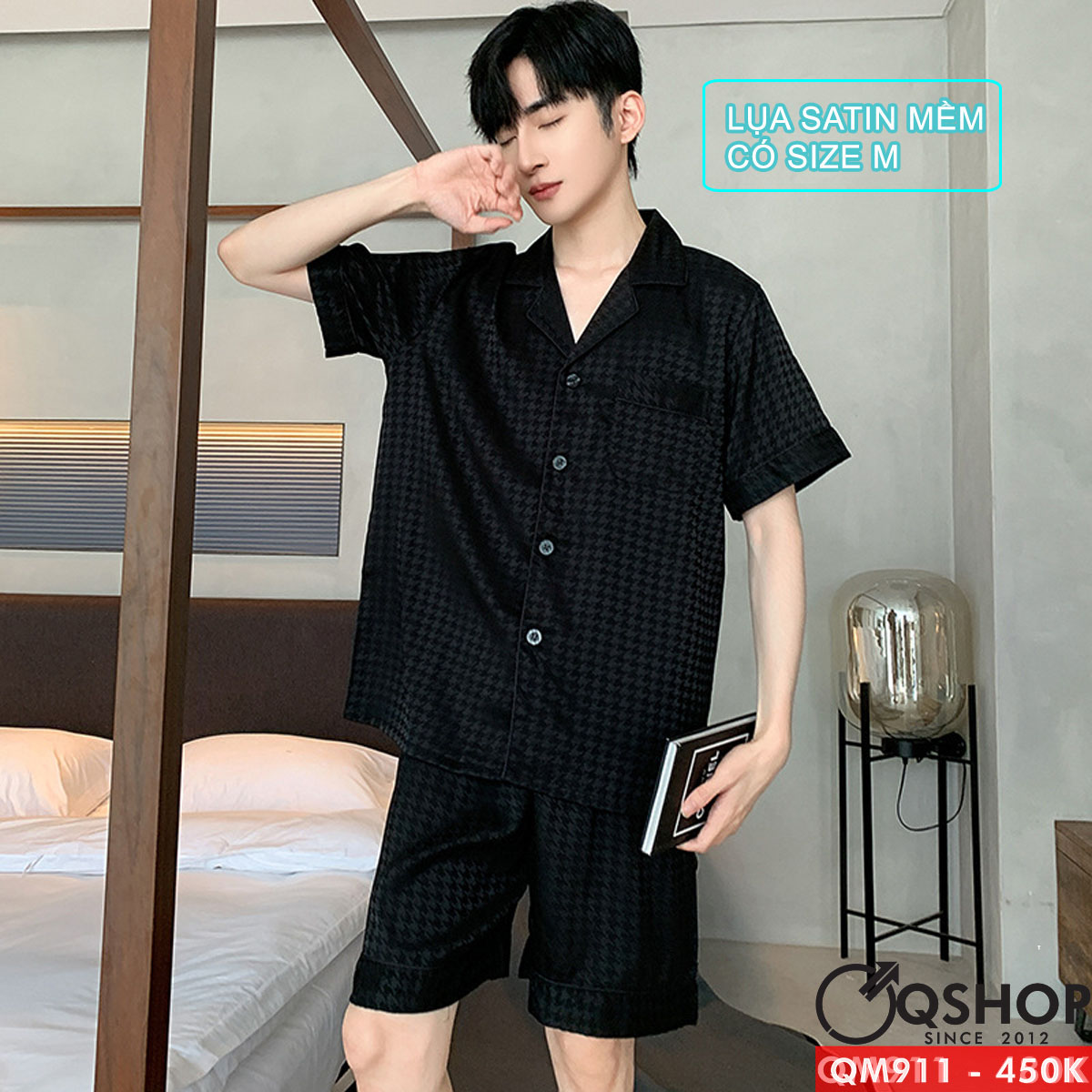Bộ đồ pijama nam quần ngắn tay ngắn lụa satin mềm thoải mái thoáng mát QM911