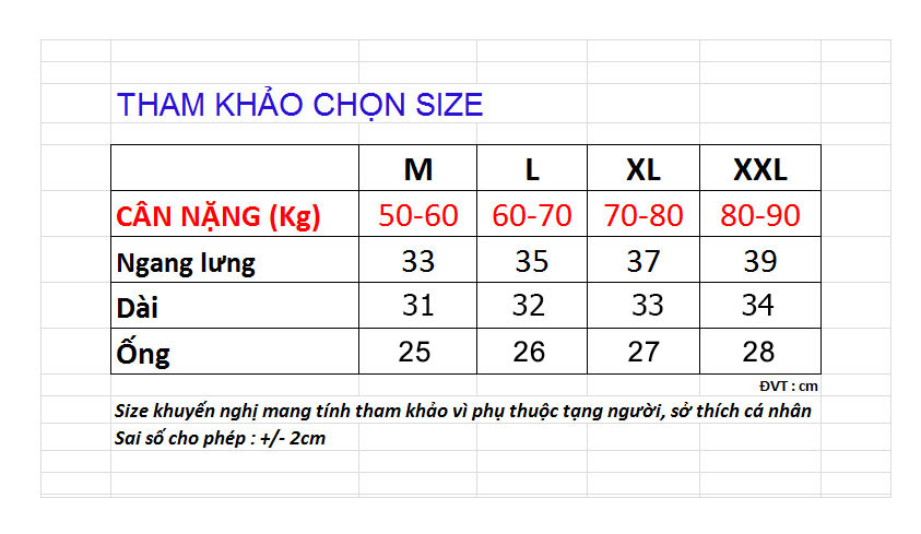 Size khuyến nghị chỉ mang tính tương đối để tham khảo vì còn phụ thuộc chiều cao, tạng người, sở thích cá nhân mặc ôm, vừa hay rộng. Nhắn tin cho shop nếu cần tư vấn size nhé.