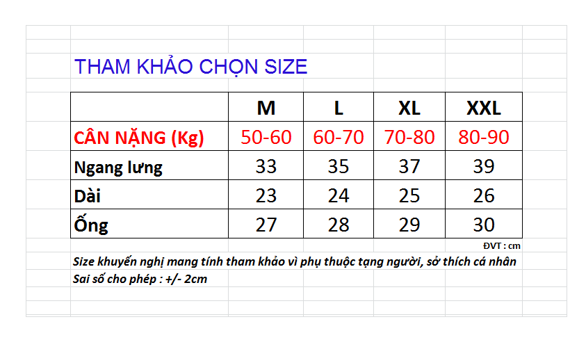 Size khuyến nghị chỉ mang tính tương đối để tham khảo vì còn phụ thuộc chiều cao, tạng người, sở thích cá nhân mặc ôm, vừa hay rộng. Nhắn tin cho shop nếu cần tư vấn size nhé.