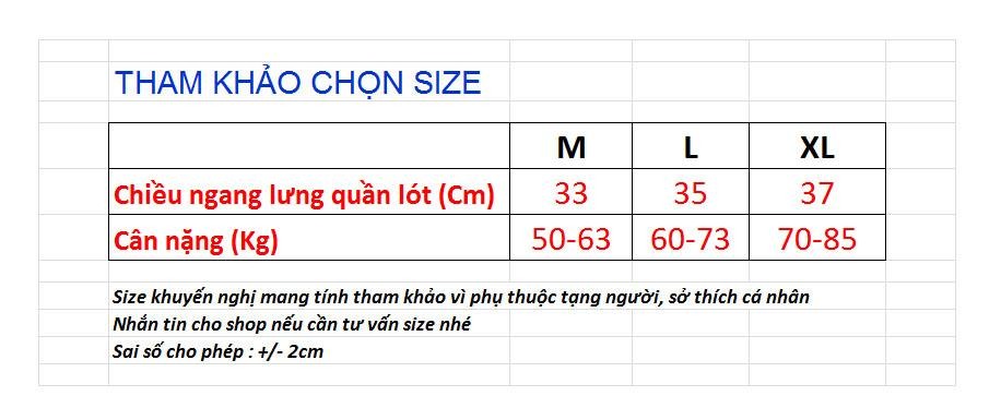 Size khuyến nghị chỉ mang tính tương đối để tham khảo vì còn phụ thuộc chiểu cao, tạng người, sở thích cá nhân mặc ôm, vừa hay rộng. Nhắn tin cho shop nếu cần tư vấn size nhé.