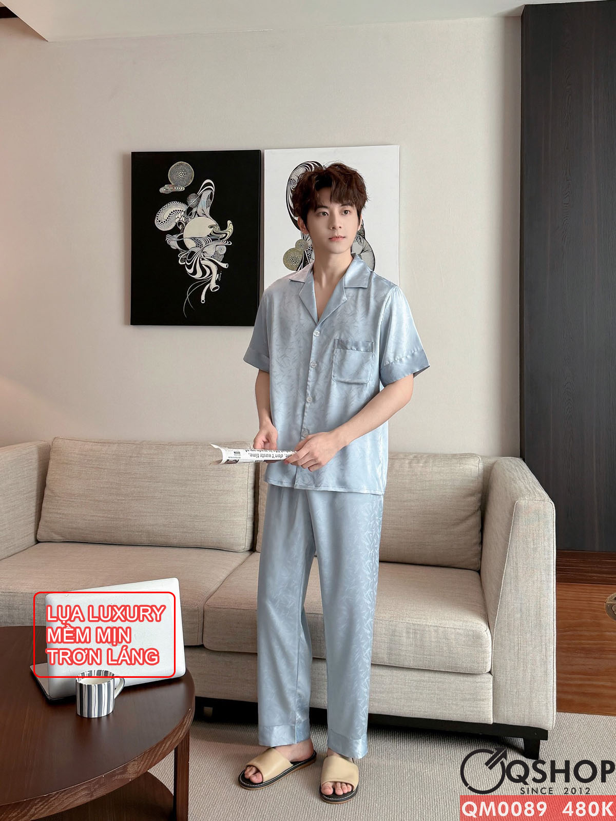 Bộ đồ ngủ Pijama nam lụa luxury mềm mịn sang trọng tay ngắn quần dài QM0089