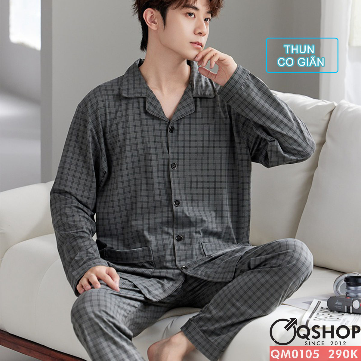 Bộ đồ ngủ pijama nam thun cotton quần dài tay dài mặc nhà mặc ngủ thoải mái QM0105