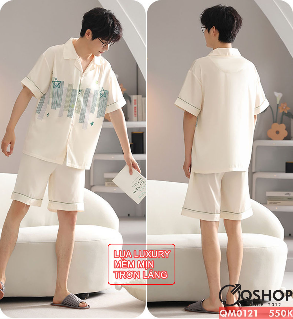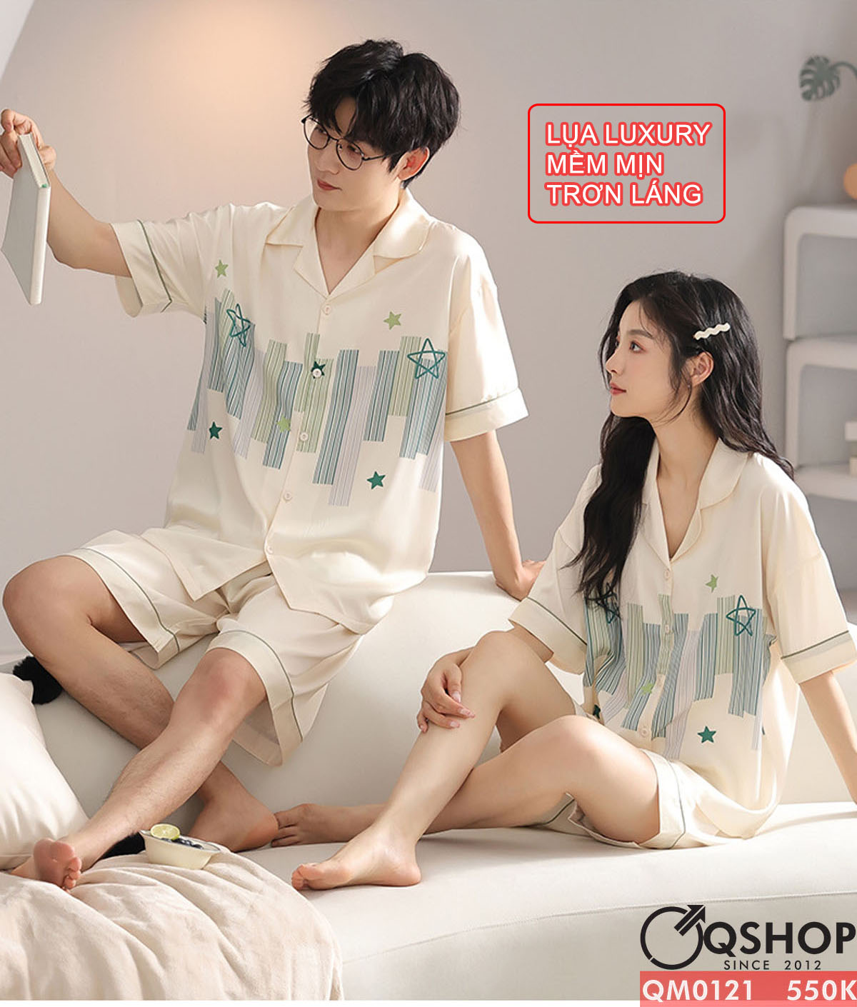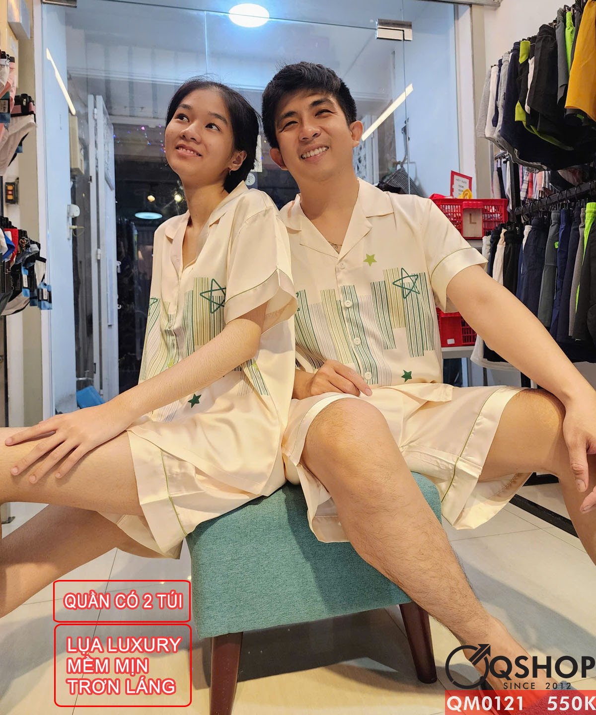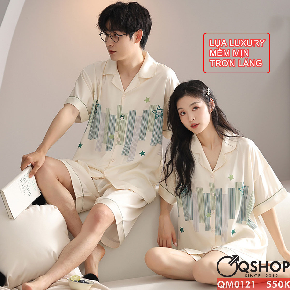 Bộ đồ ngủ pijama cặp đôi lụa luxury cao cấp quần ngắn tay ngắn sang trọng có túi QM0121