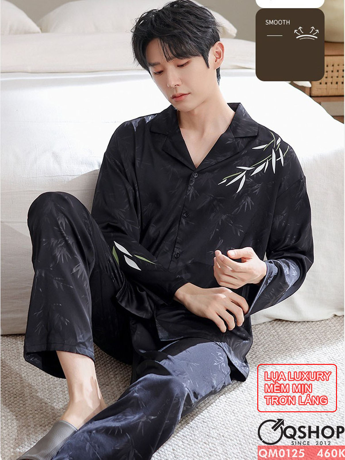 Bộ đồ ngủ Pijama nam lụa luxury mềm mịn sang trọng tay dài quần dài QM0125