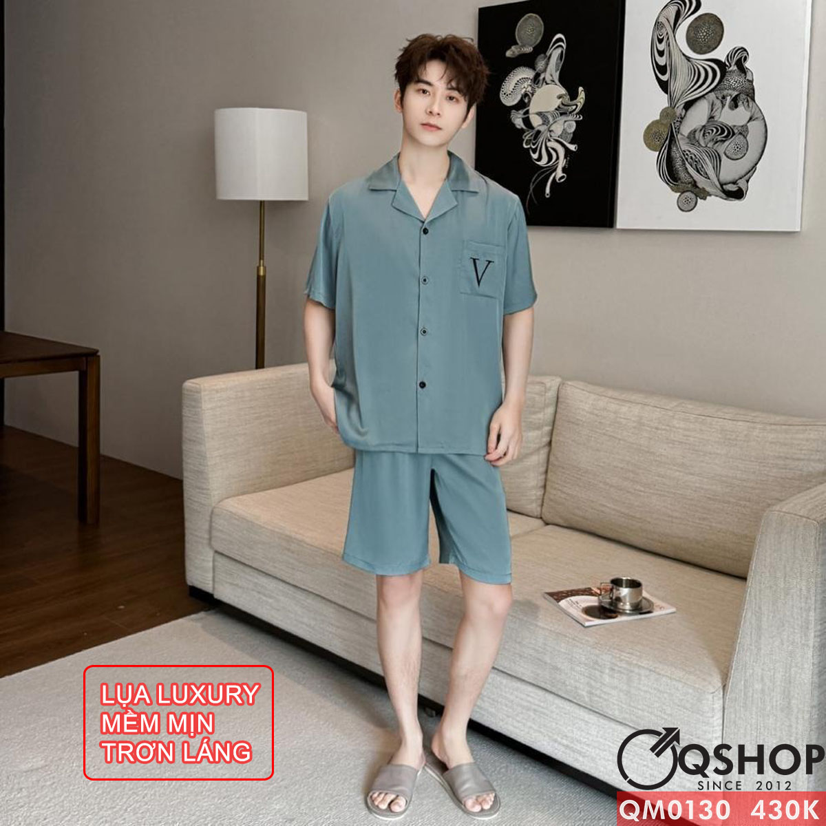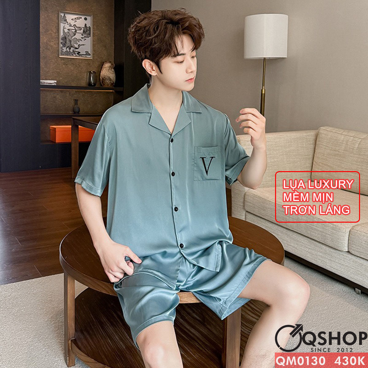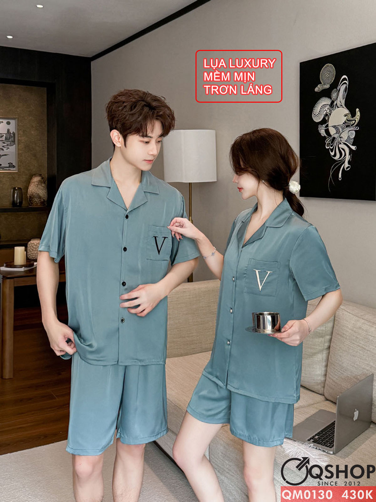 Bộ đồ ngủ pijama cặp đôi lụa luxury cao cấp quần ngắn tay ngắn sang trọng QM0130