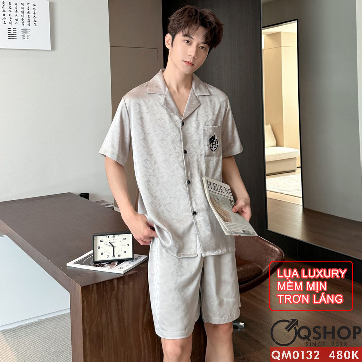 Bộ đồ ngủ pijama cặp đôi lụa luxury cao cấp quần ngắn tay ngắn sang trọng QM0132