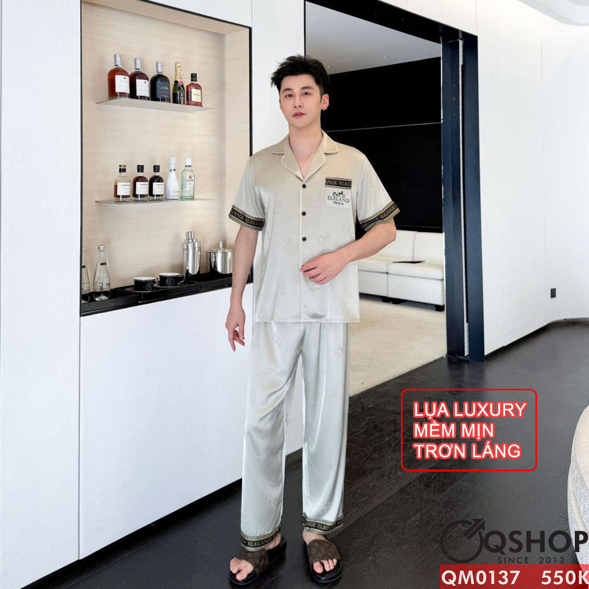 Bộ đồ ngủ pijama cặp đôi lụa luxury cao cấp quần ngắn tay ngắn sang trọng QM0137
