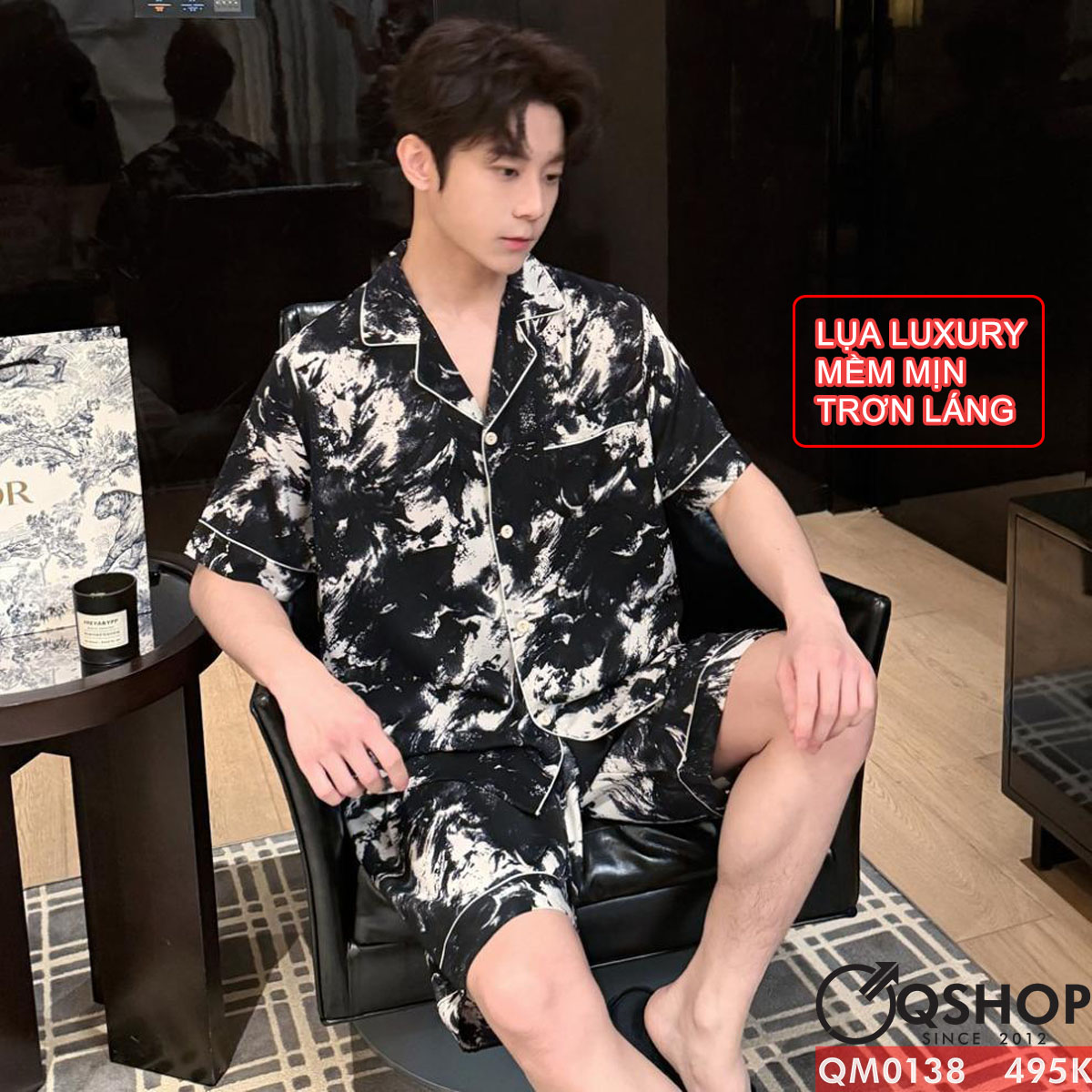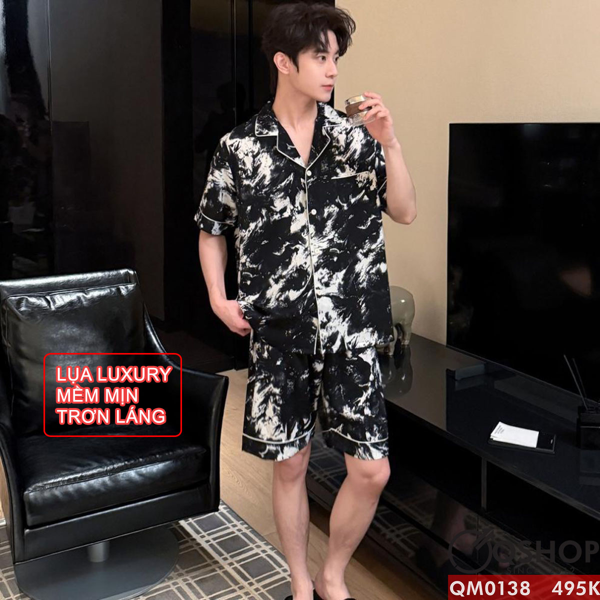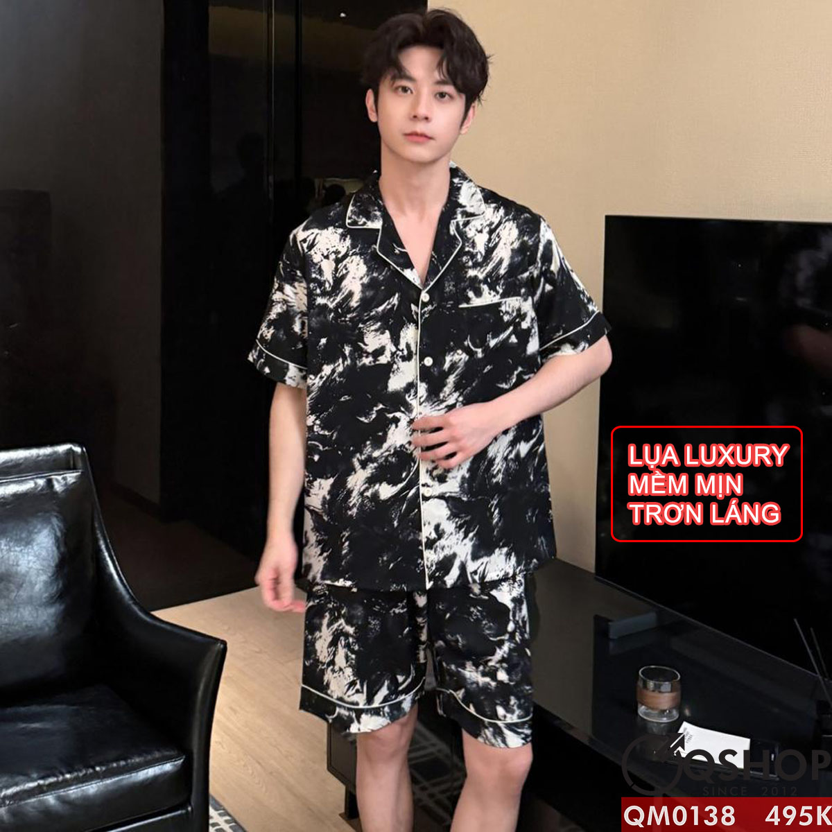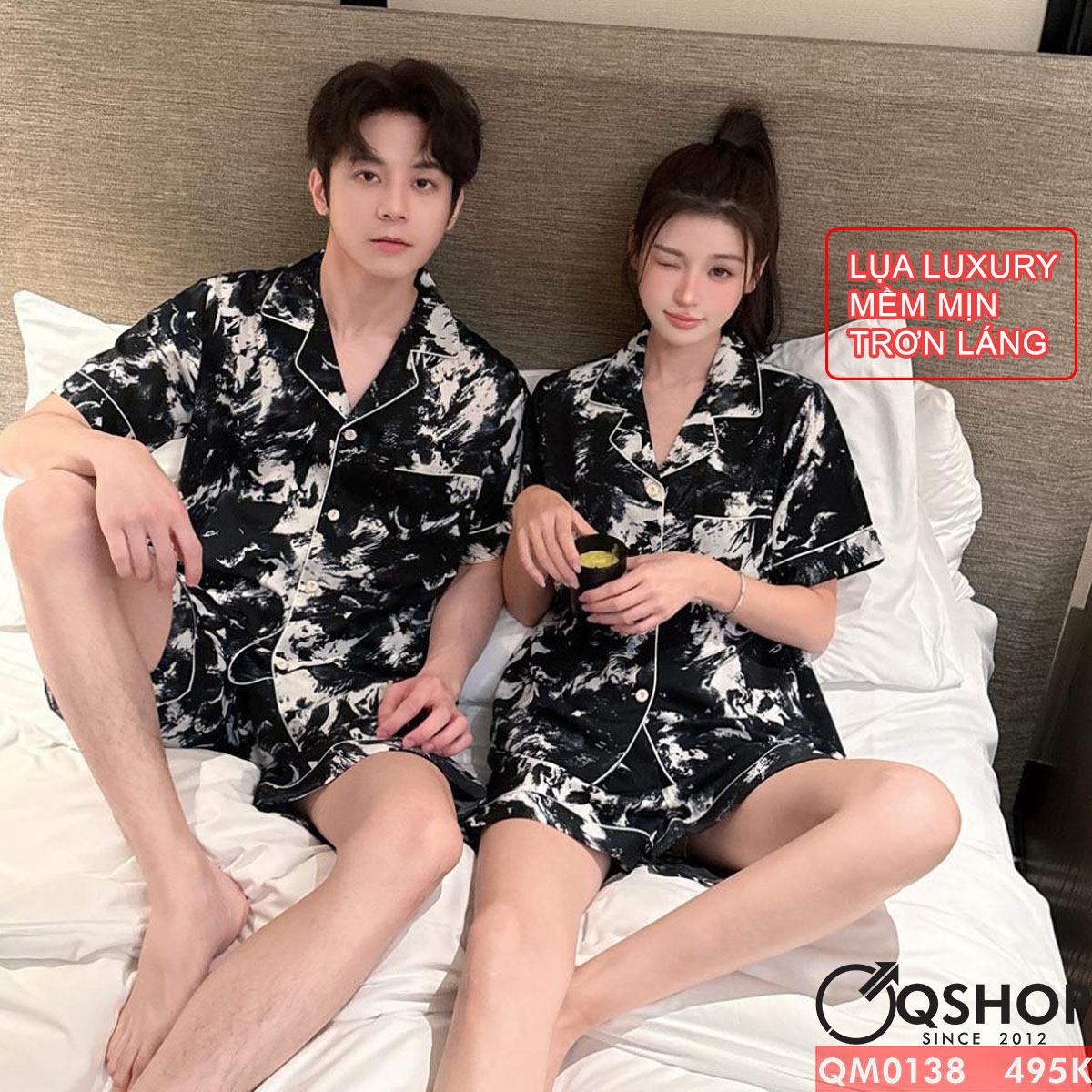 Bộ đồ ngủ pijama cặp đôi lụa luxury cao cấp quần ngắn tay ngắn sang trọng QM0138