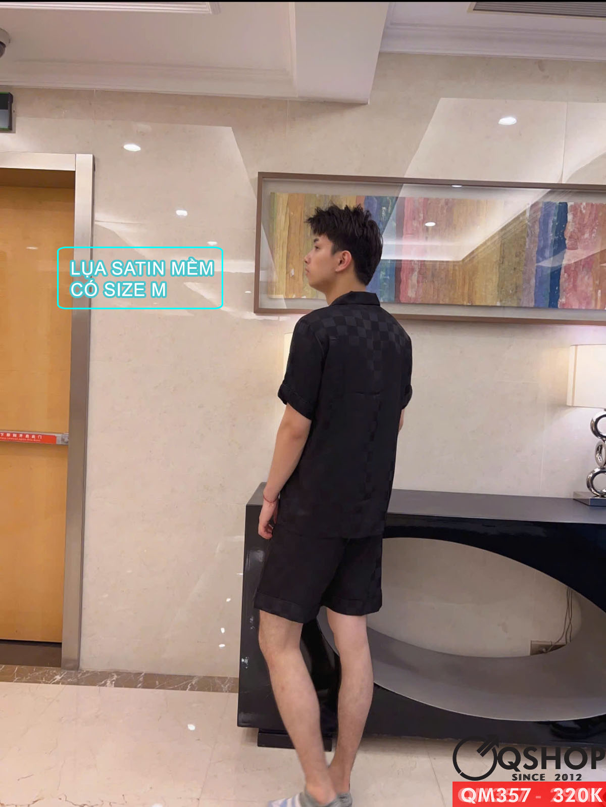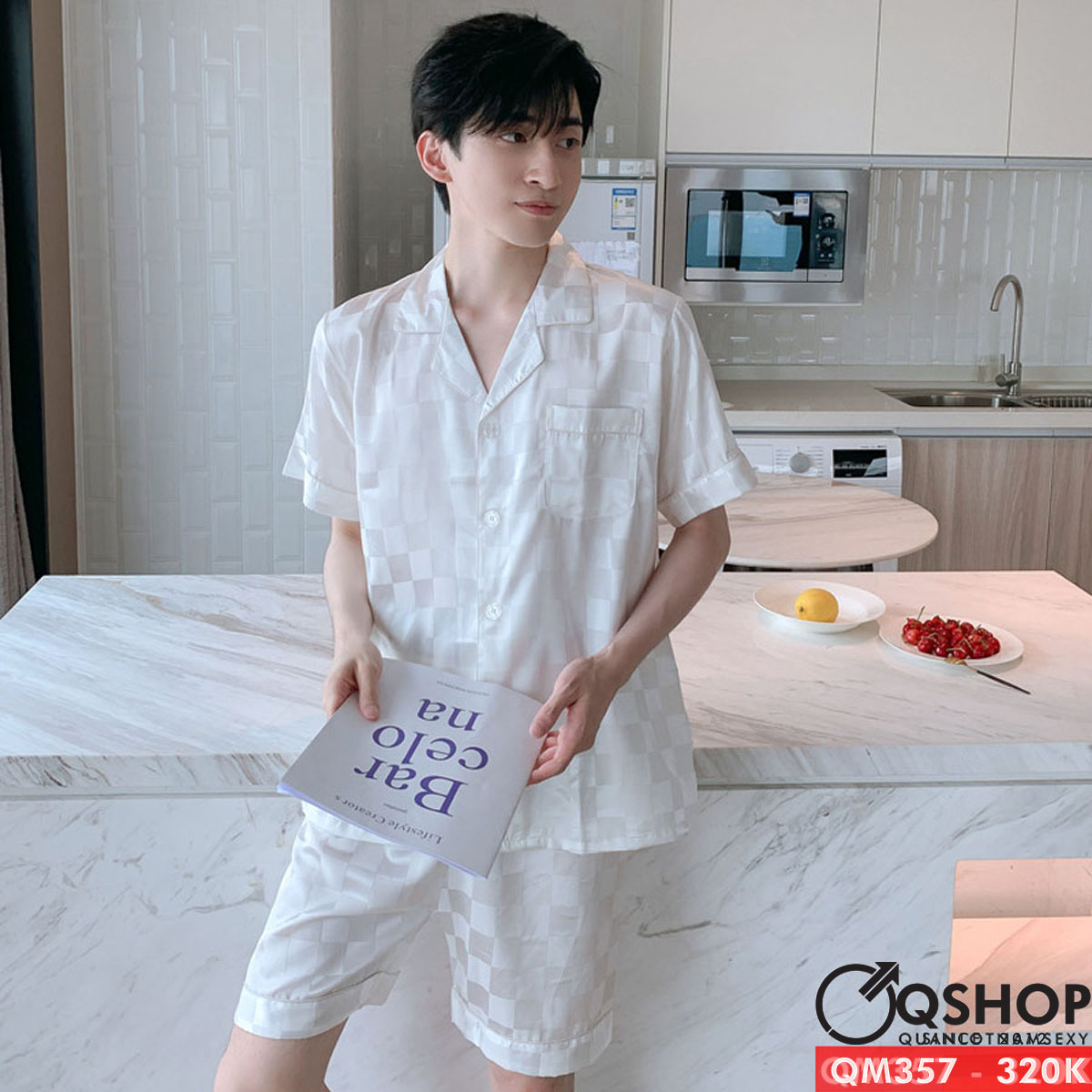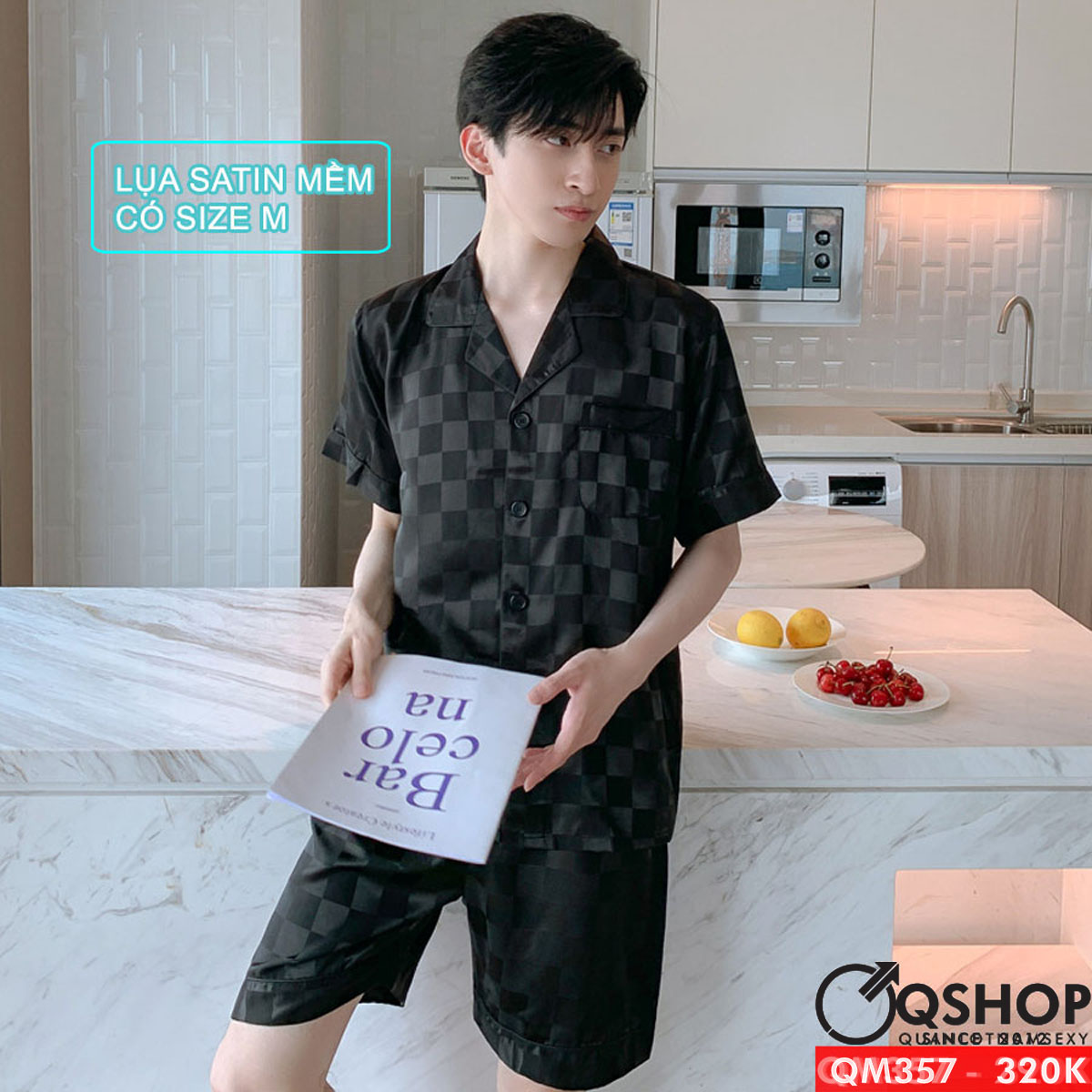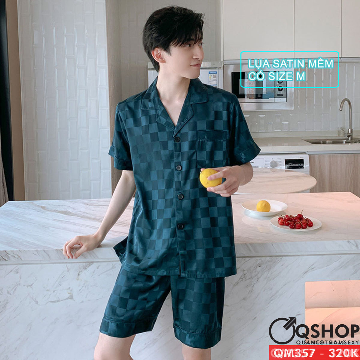 Bộ pijama nam quần ngắn tay ngắn lụa satin mềm mặc nhà mặc ngủ thoải mái QM357