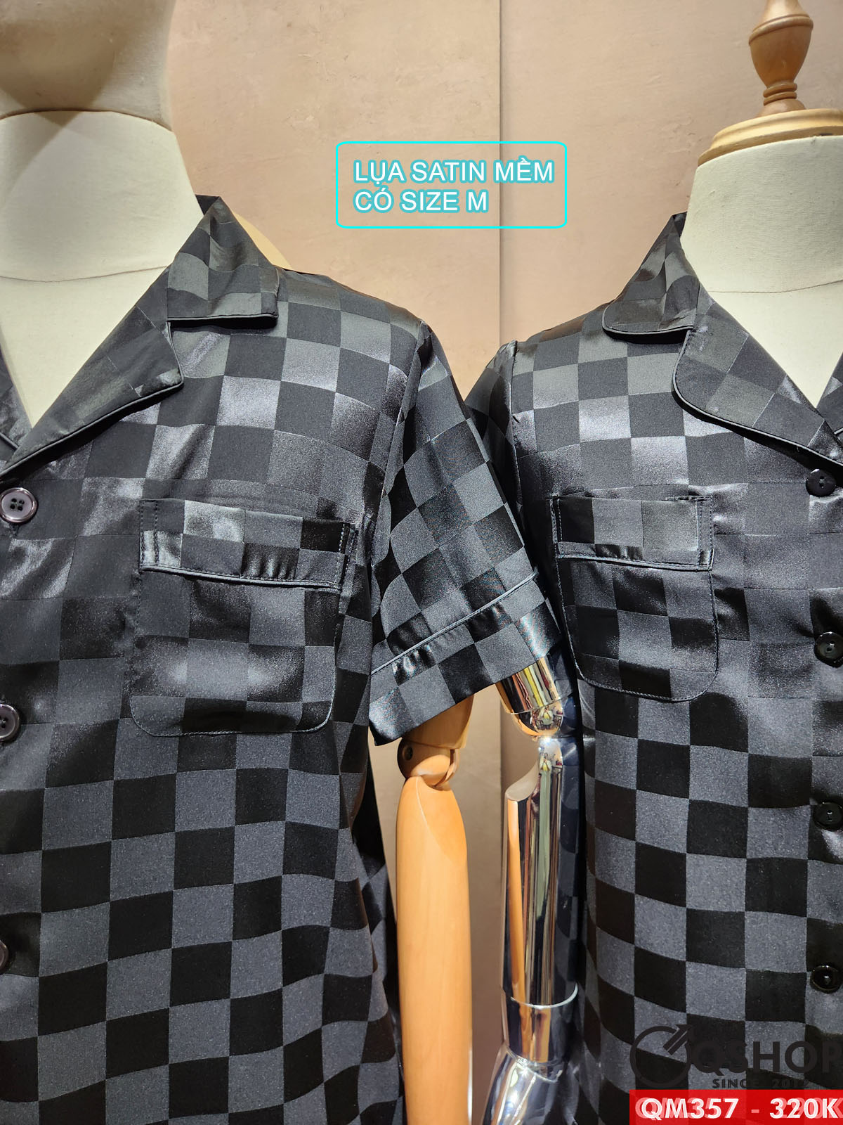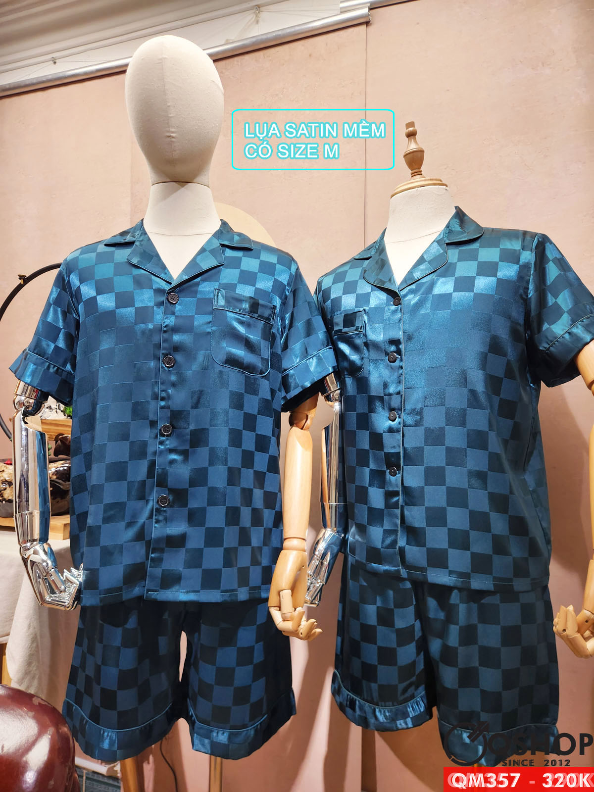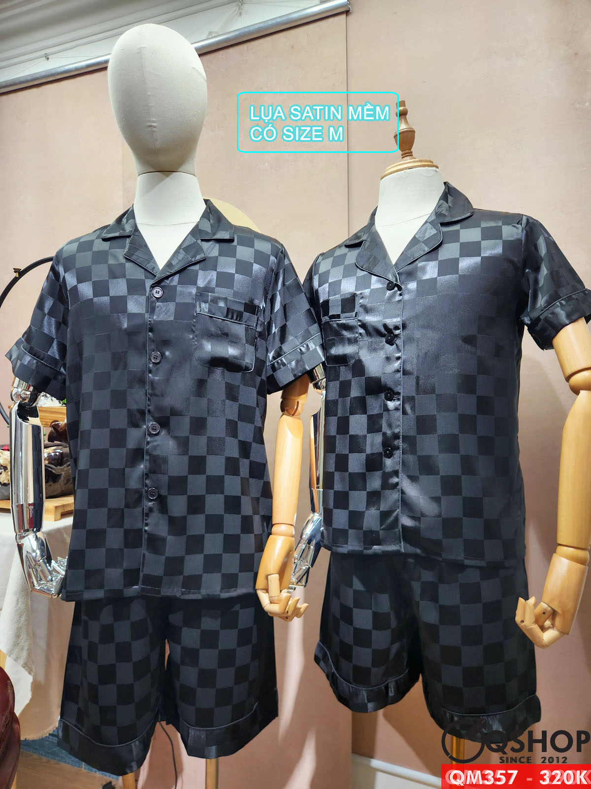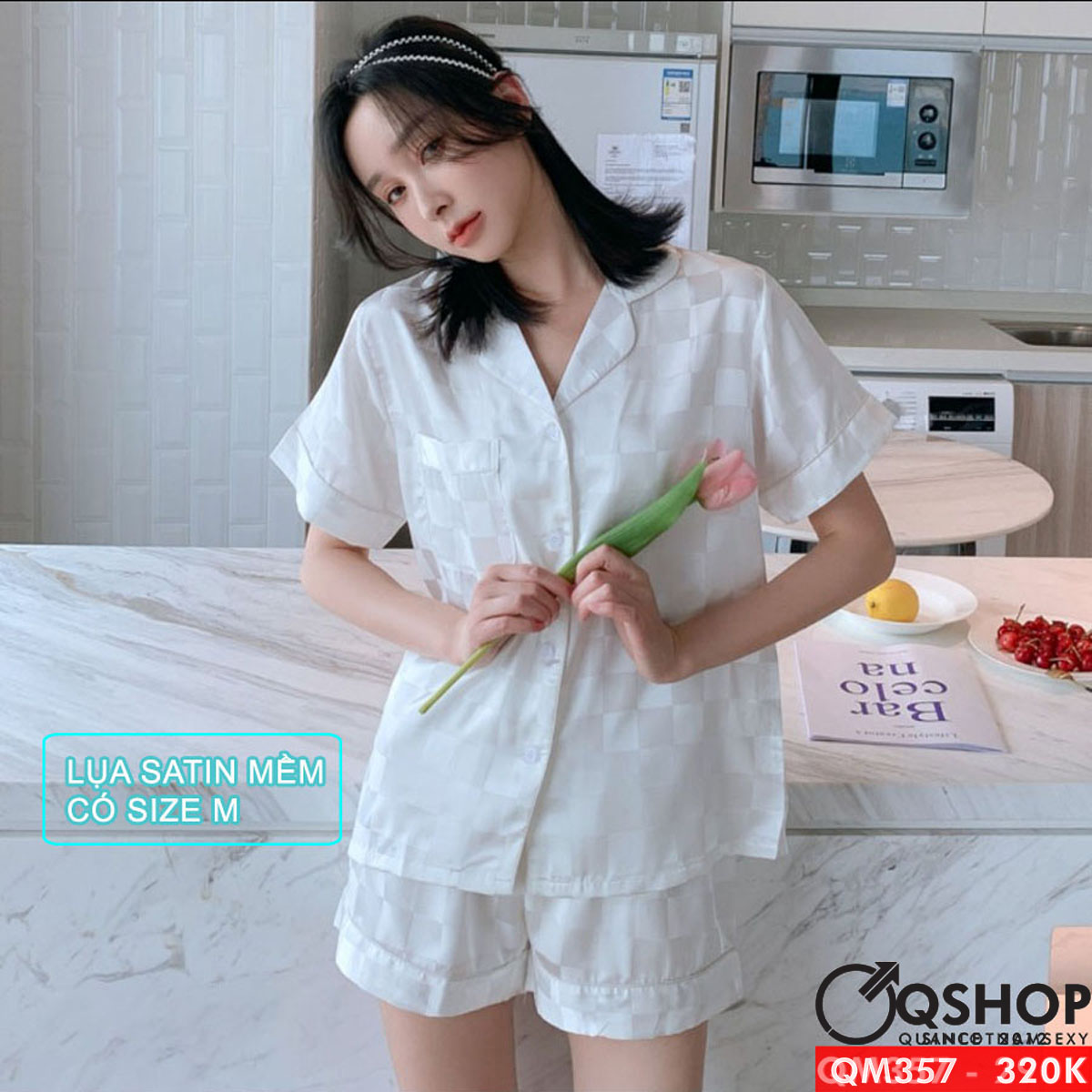 Bộ pijama nam quần ngắn tay ngắn lụa satin mềm mặc nhà mặc ngủ thoải mái QM357