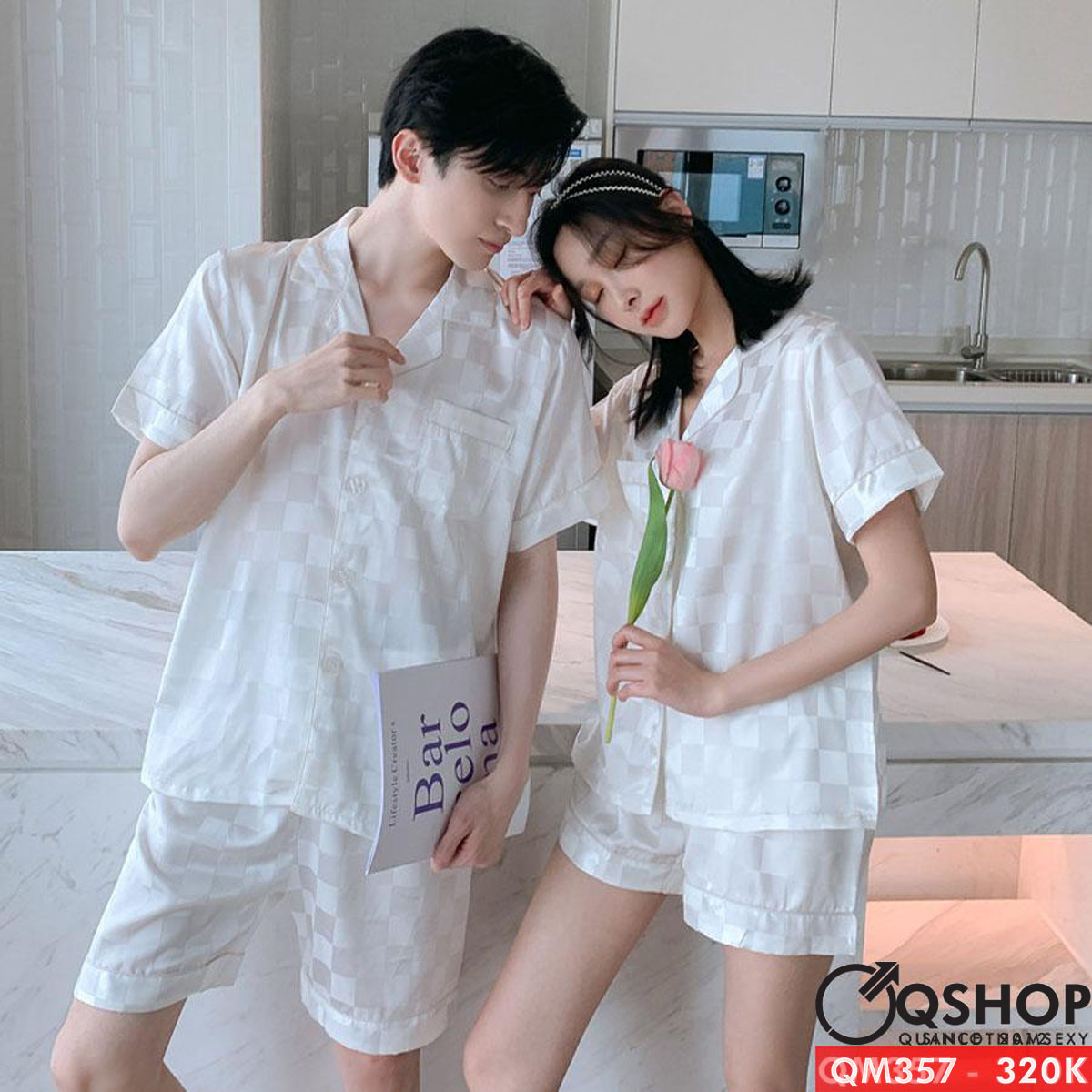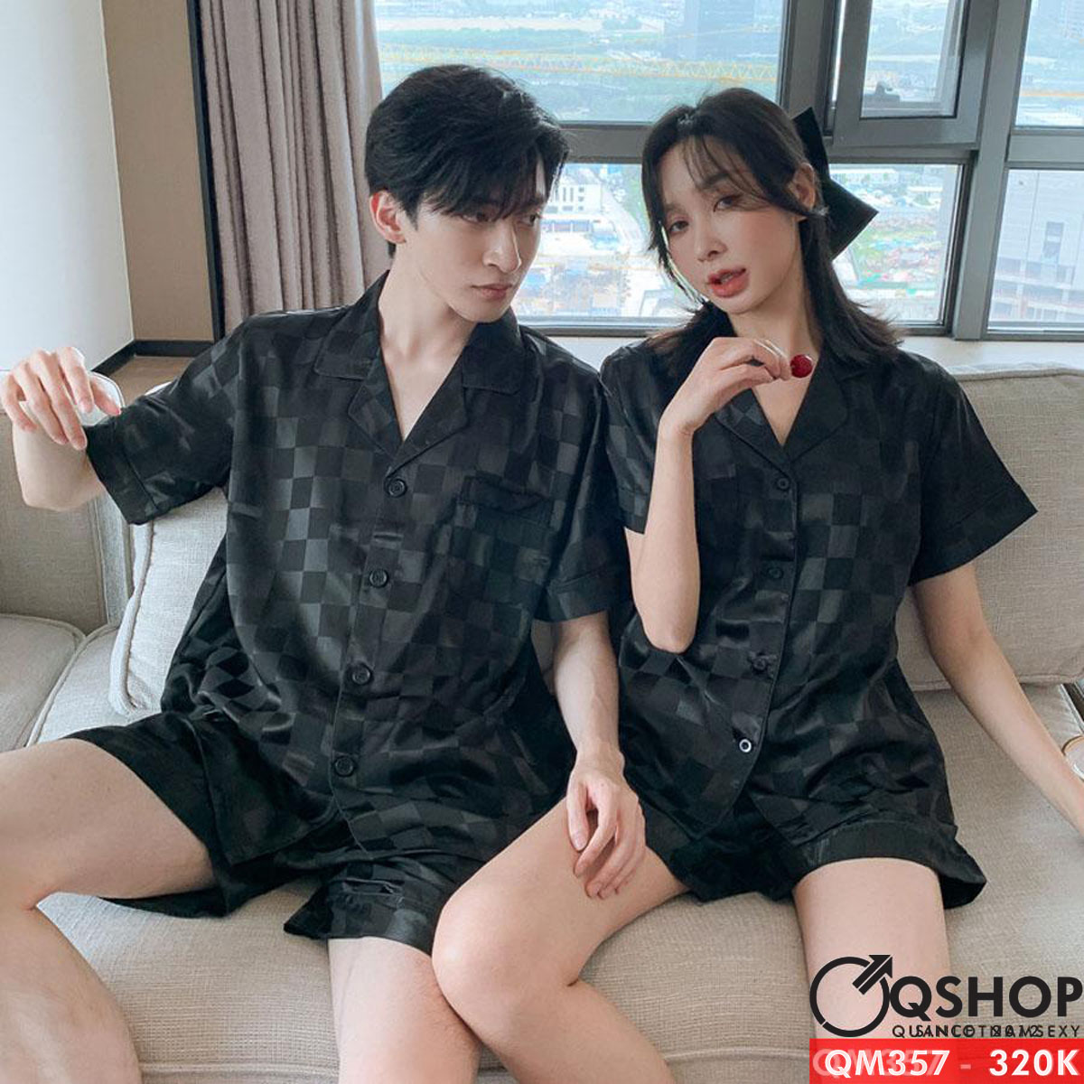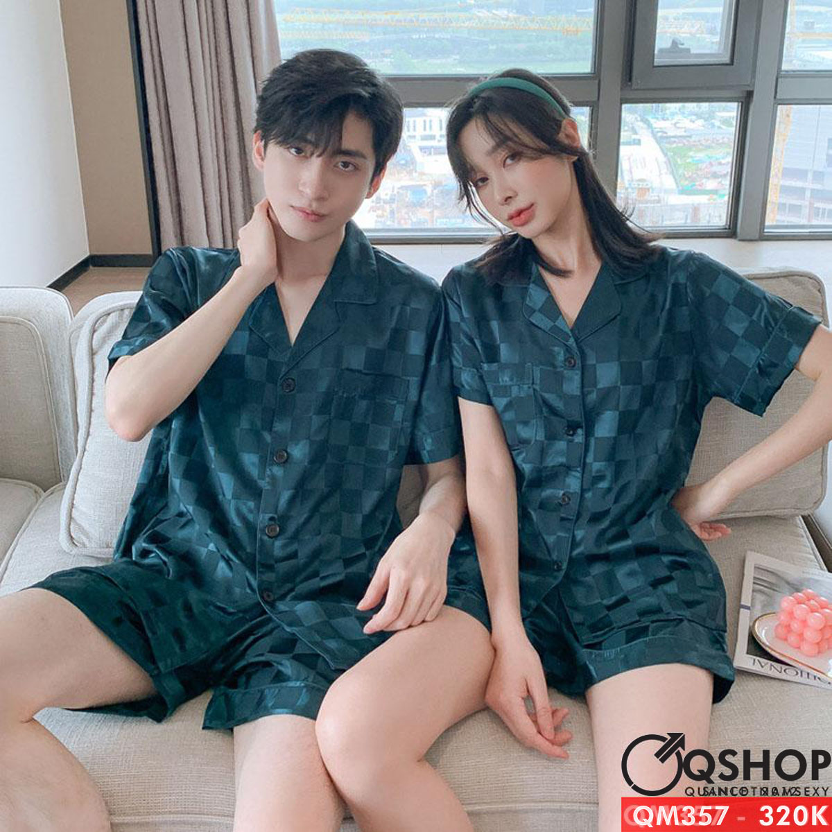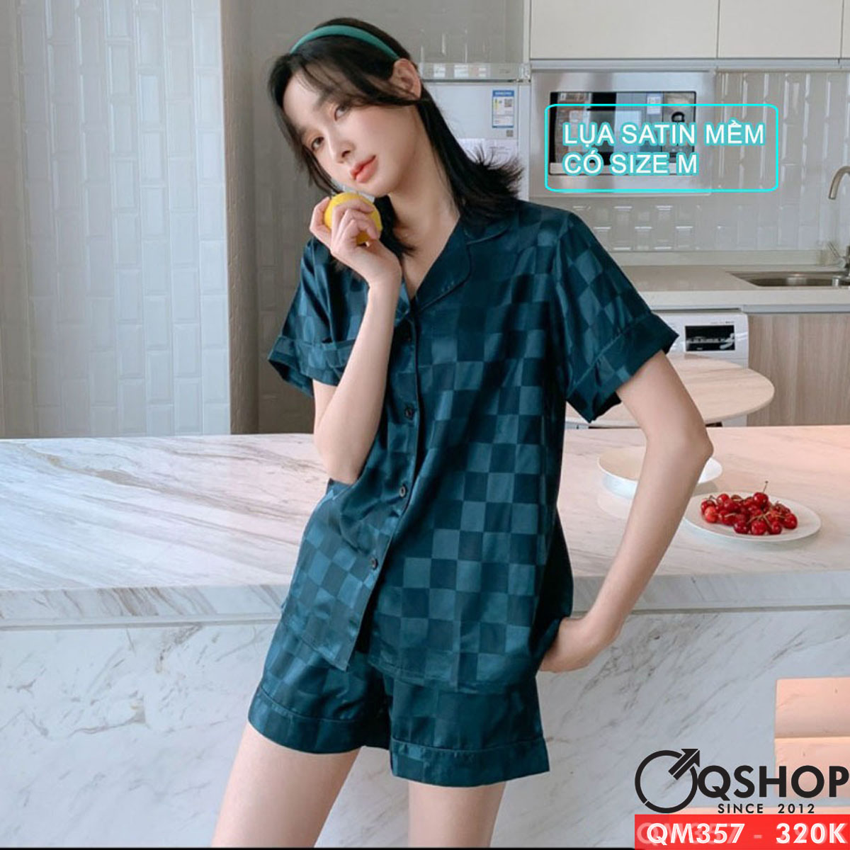 Bộ pijama nam quần ngắn tay ngắn lụa satin mềm mặc nhà mặc ngủ thoải mái QM357