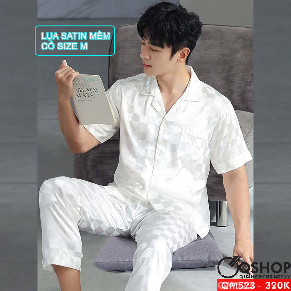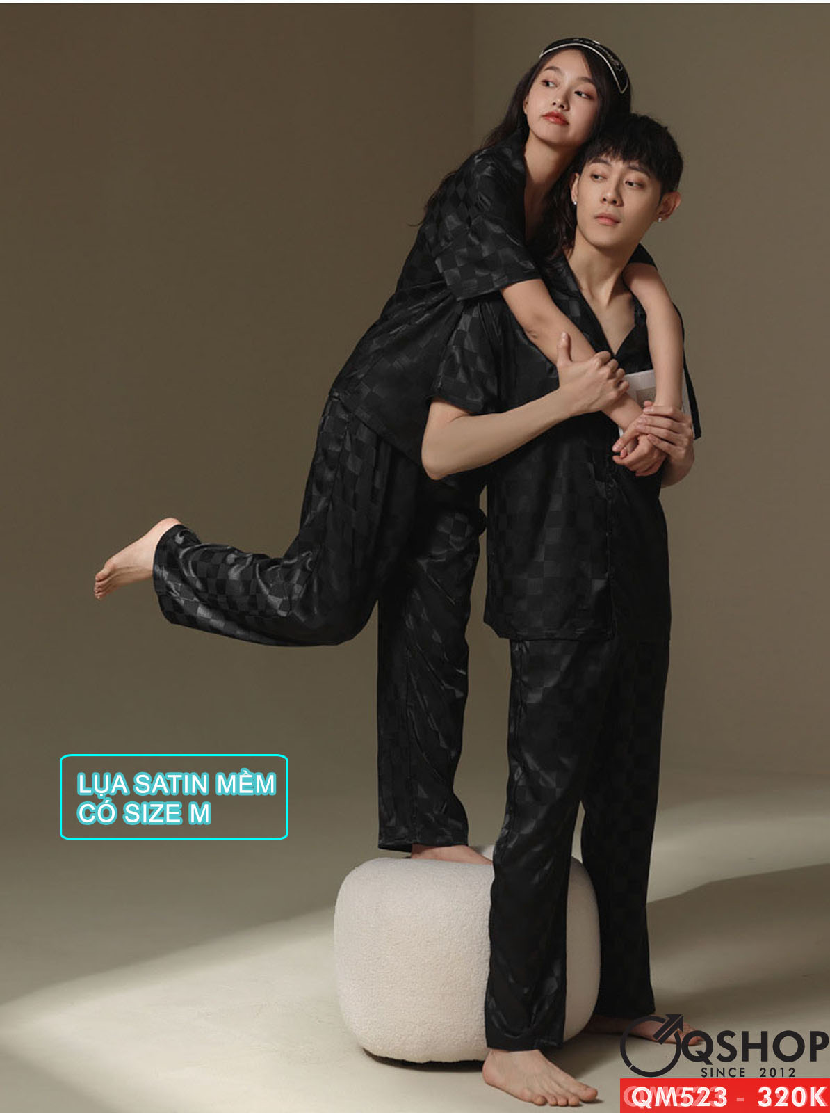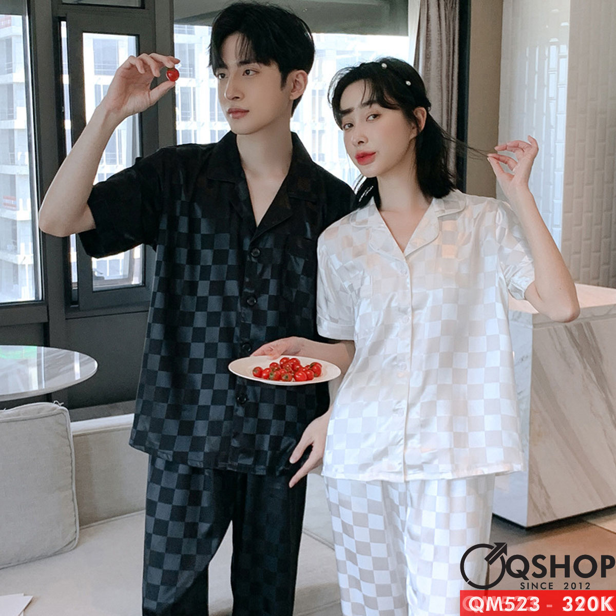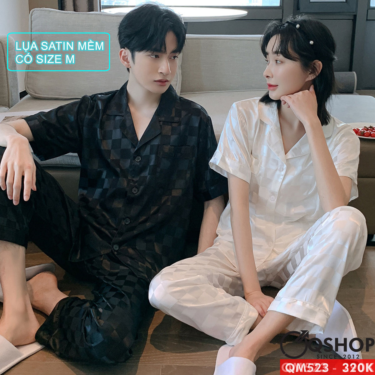 Bộ đồ pijama cặp đôi quần dài tay ngắn lụa satin mềm QM523