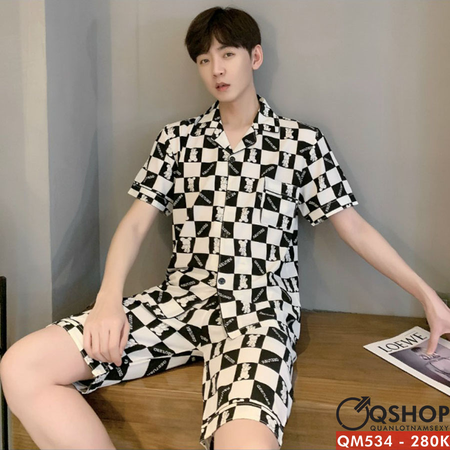 Bộ đồ pijama nam mặc nhà mặc ngủ quần ngắn tay ngắn vải silk QM534