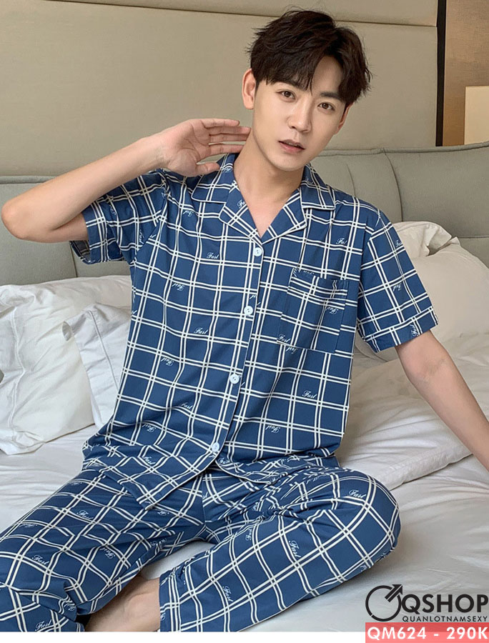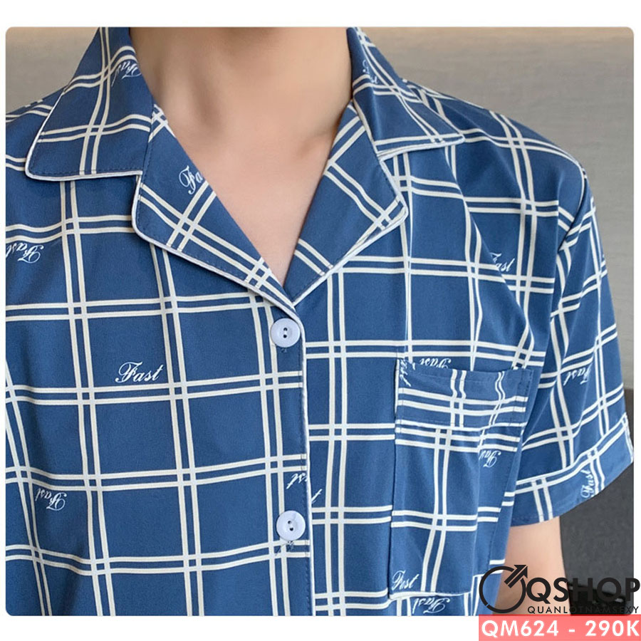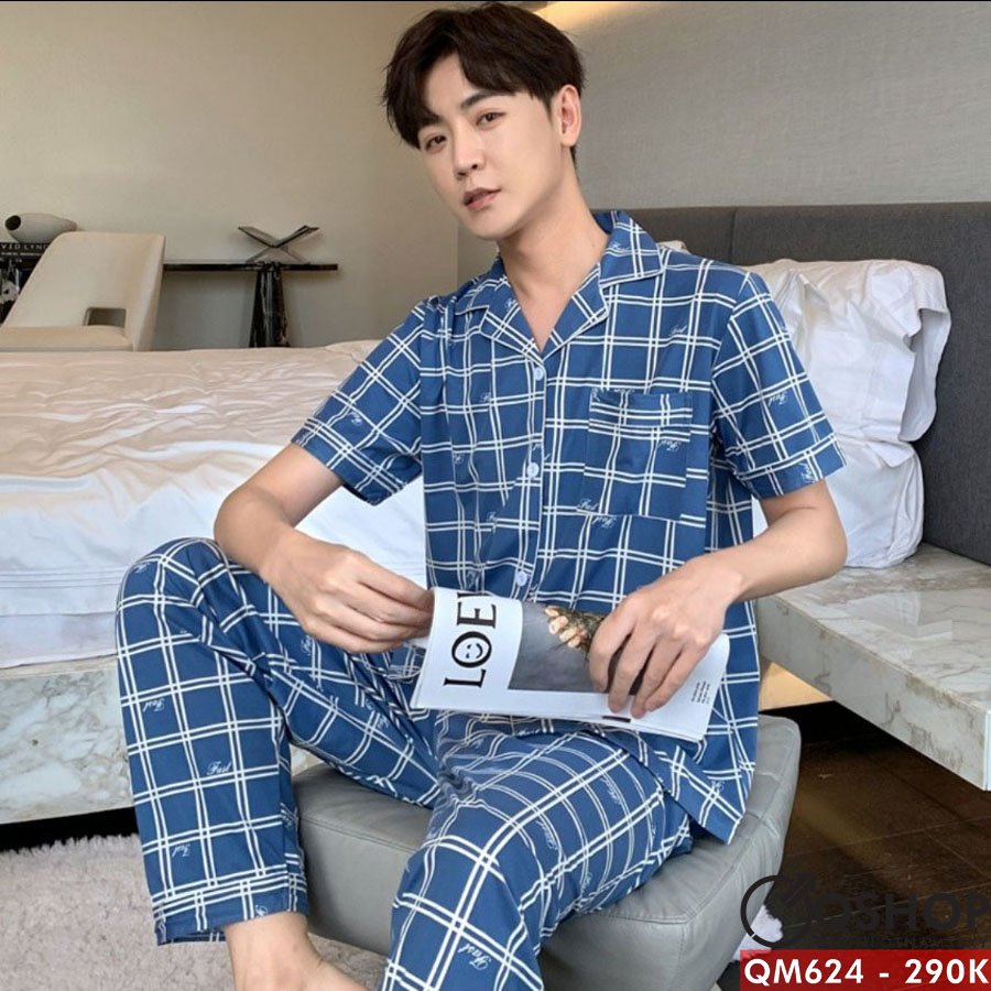 Bộ đồ pijama nam quần dài, tay ngắn thun cotton QM624