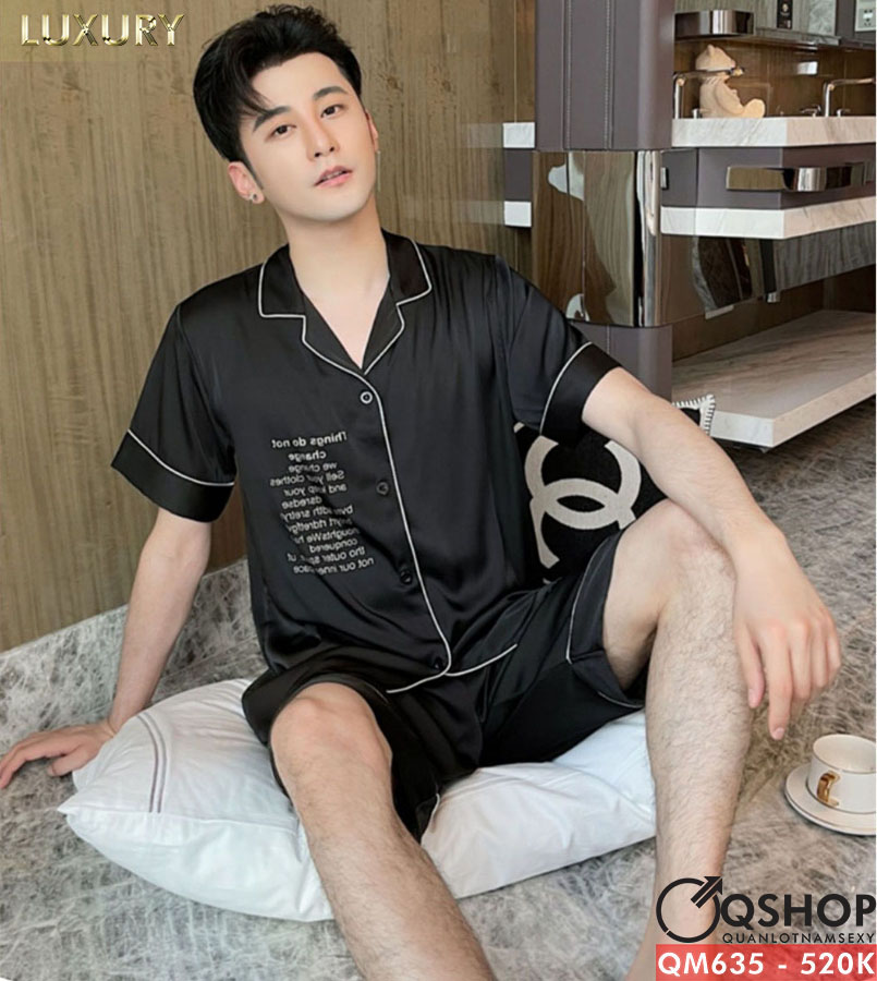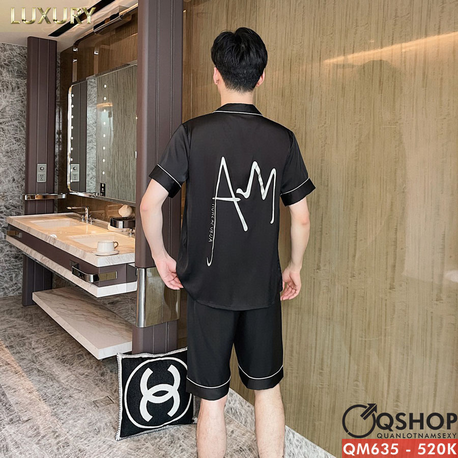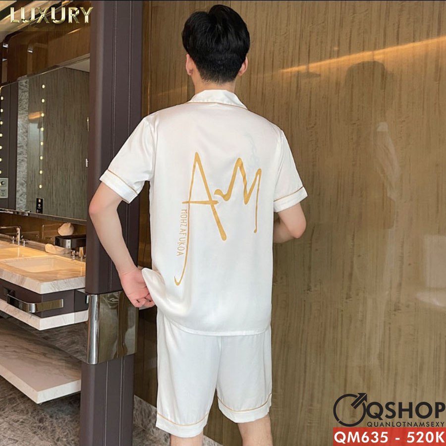 Bộ đồ pijama nam quần ngắn lụa luxury cao cấp mặc nhà mặc ngủ thoải mái QM635