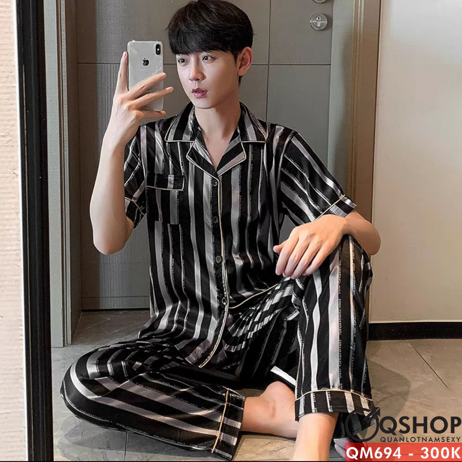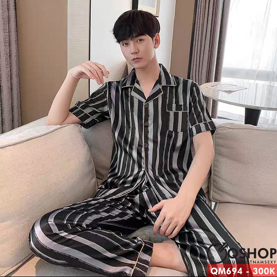 Bộ đồ pijama nam lụa satin cao cấp QM694