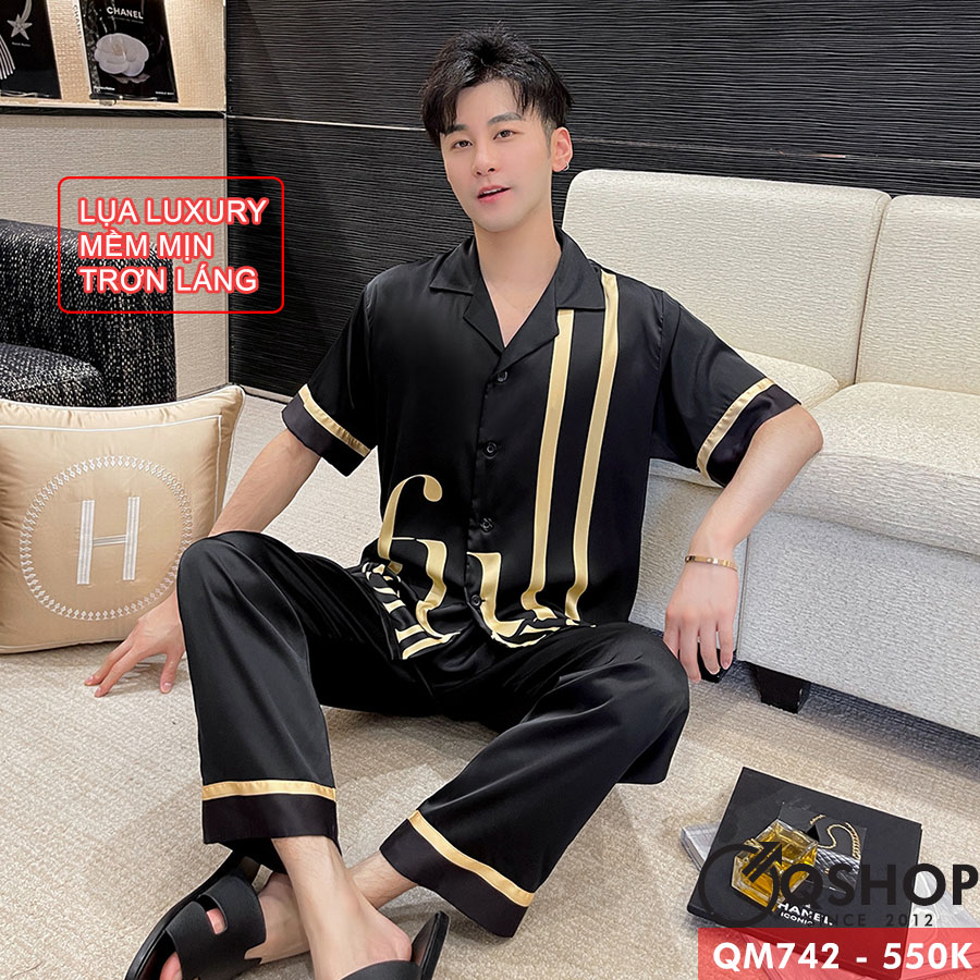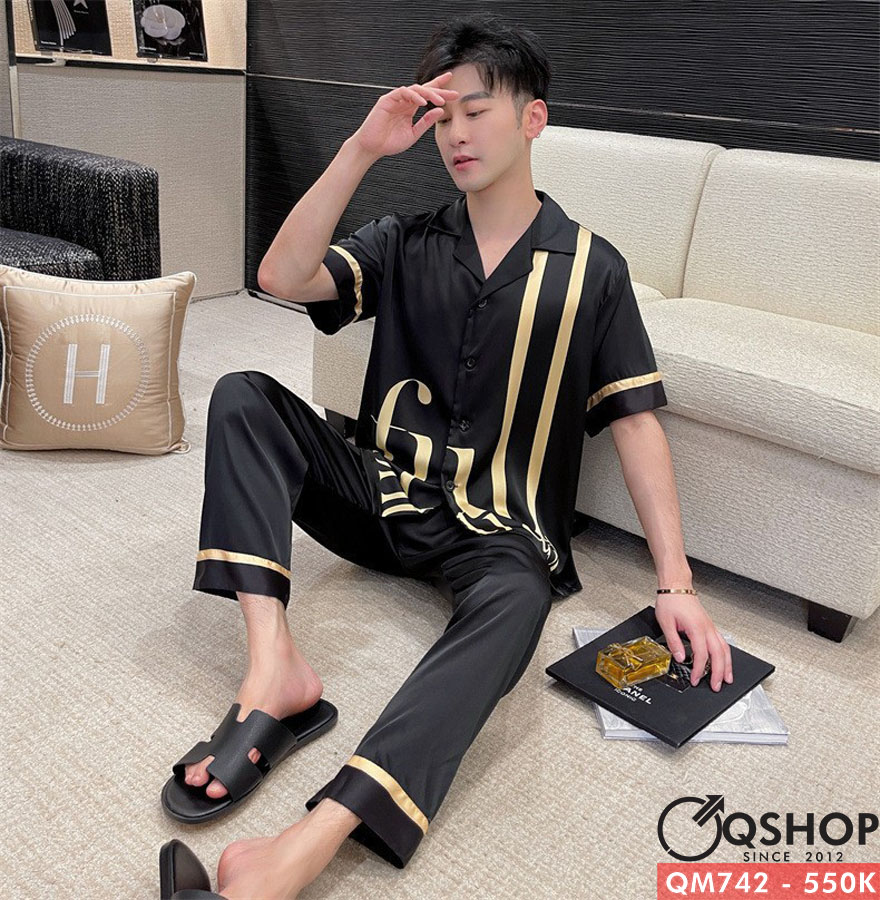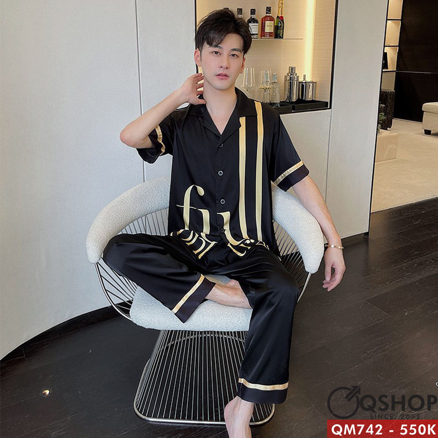 Bộ đồ pijama nam Luxury quần dài, tay ngắn cao cấp QM742