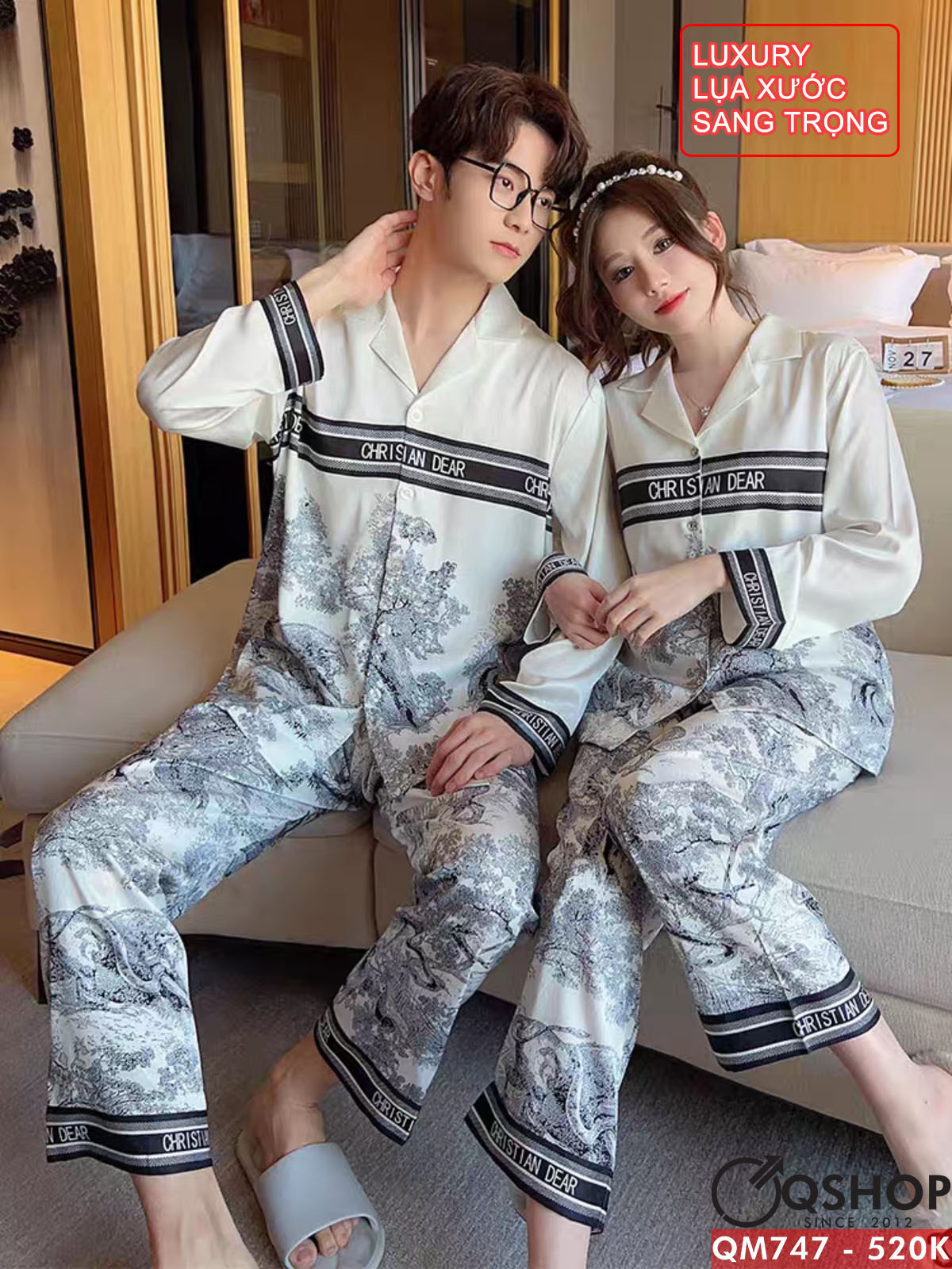 Bộ pijama cặp đôi tay dài lụa xướt luxury cao cấp sang trọng QM747