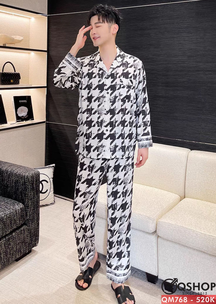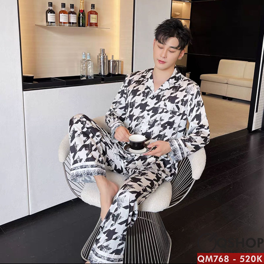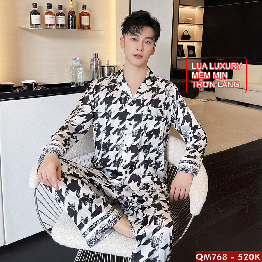 Bộ đồ pijama nam tay dài lụa luxury cao cấp mặc nhà mặc ngủ thoải mái QM768