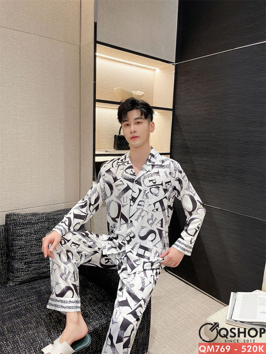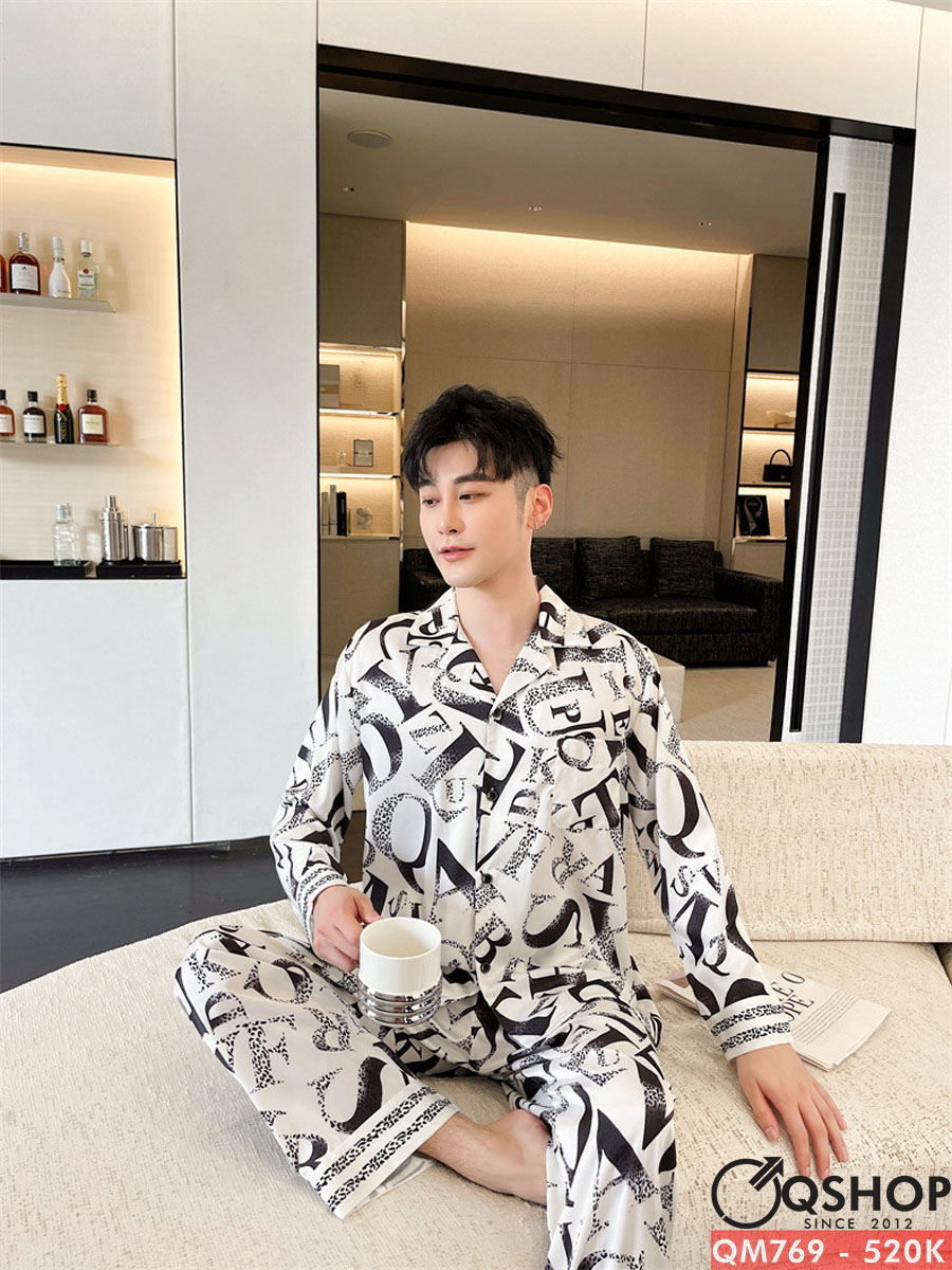 Bộ pijama nam tay dài lụa luxury cao cấp mặc nhà mặc ngủ thoải mái QM769