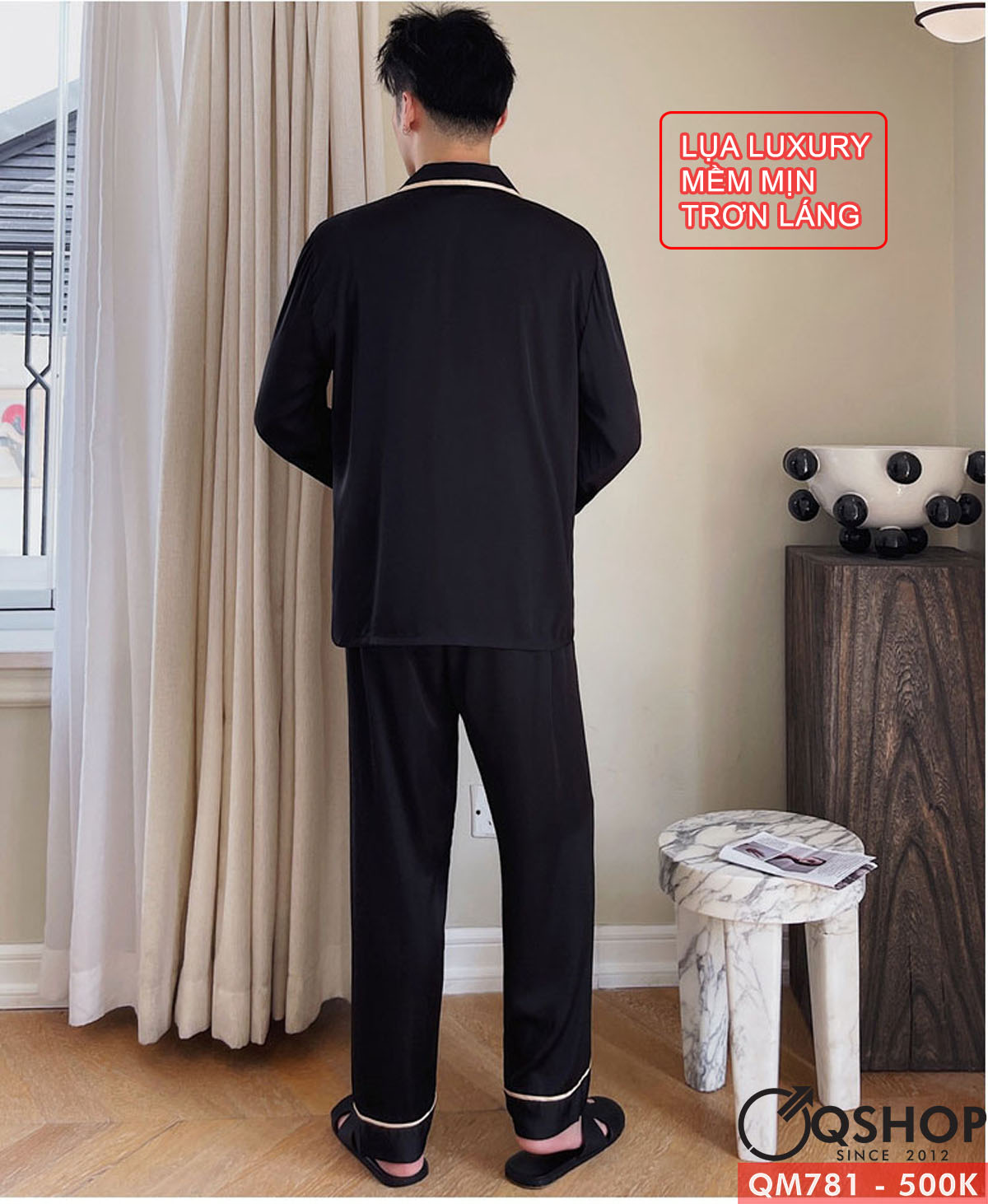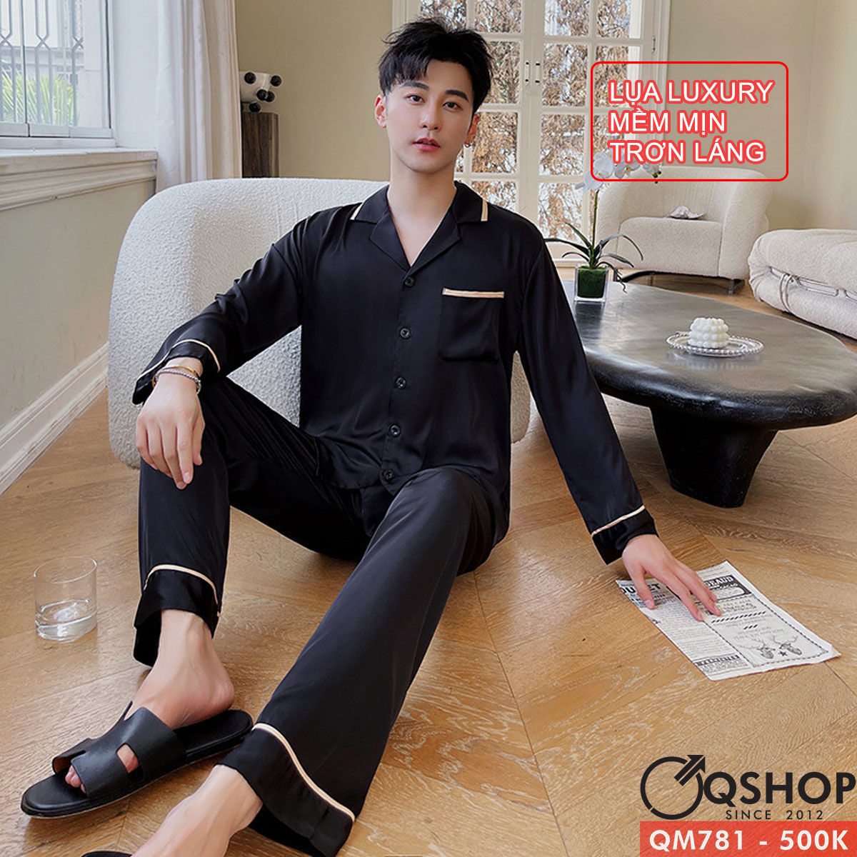 Bộ đồ pijama nam tay dài lụa luxury cao cấp mặc nhà mặc ngủ thoải mái QM781
