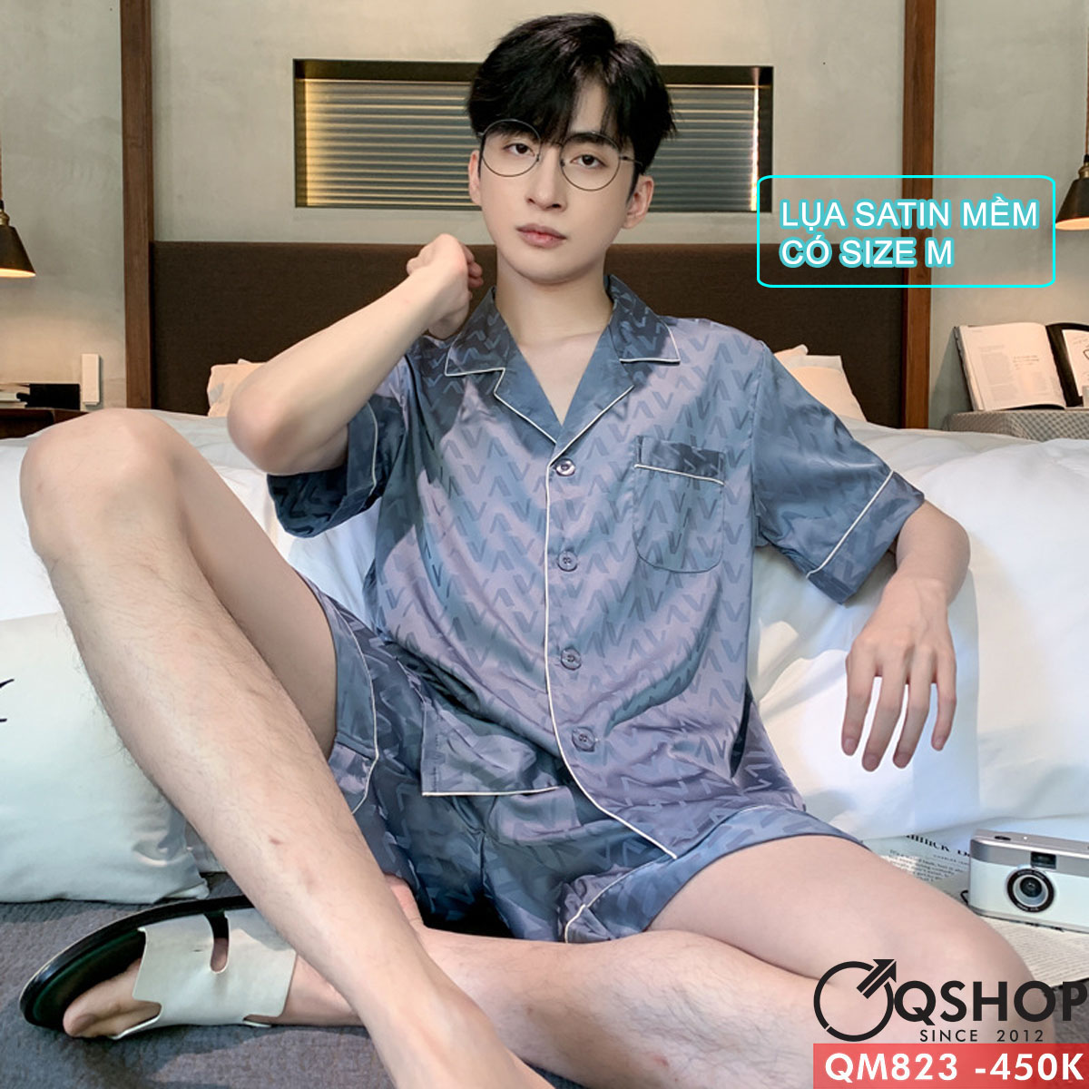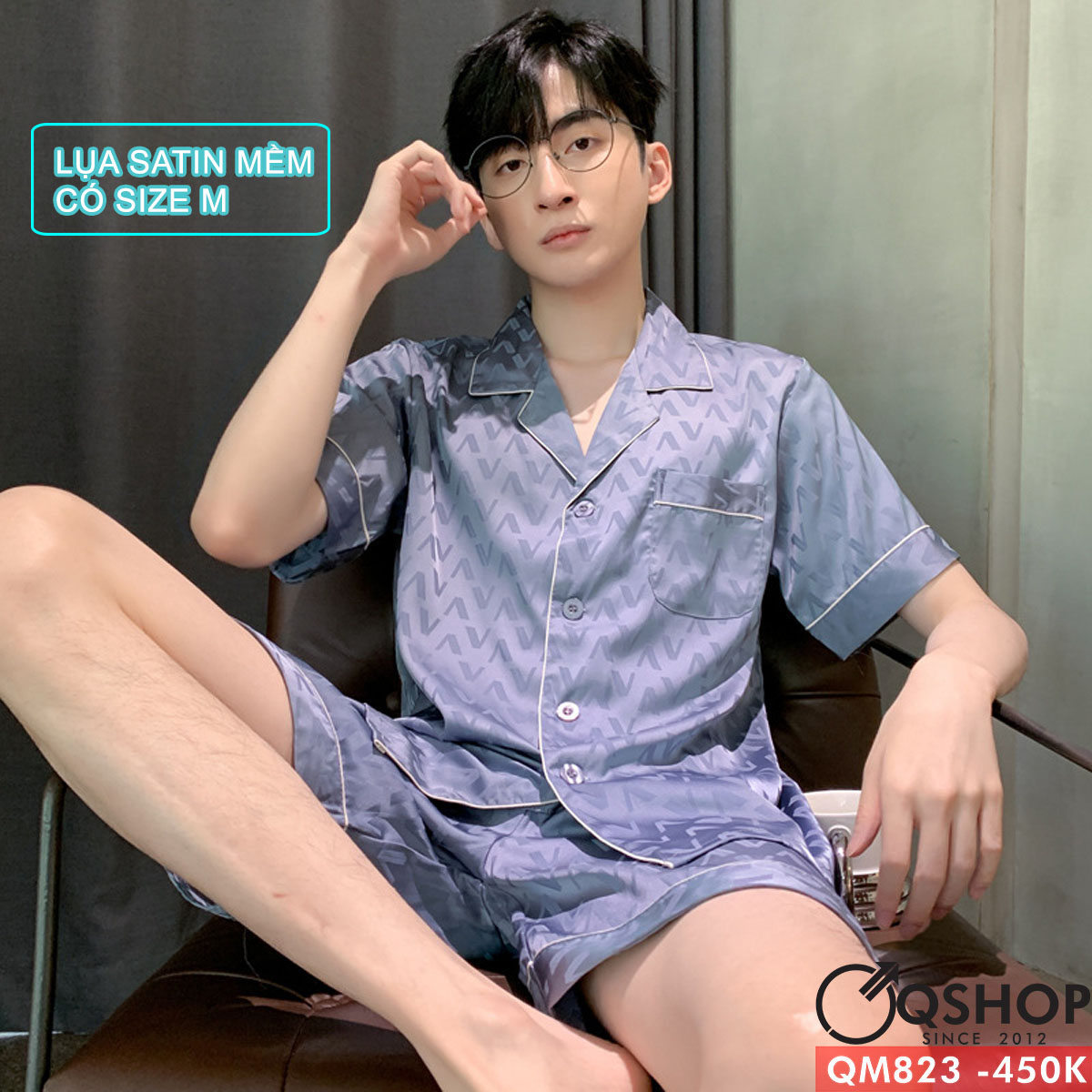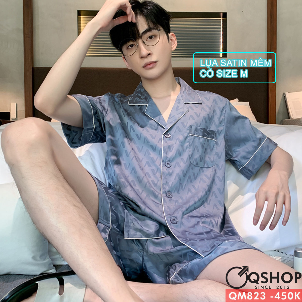 Bộ đồ ngủ pijama nam quần ngắn lụa satin mềm mặc nhà mặc ngủ thoải mái QM823