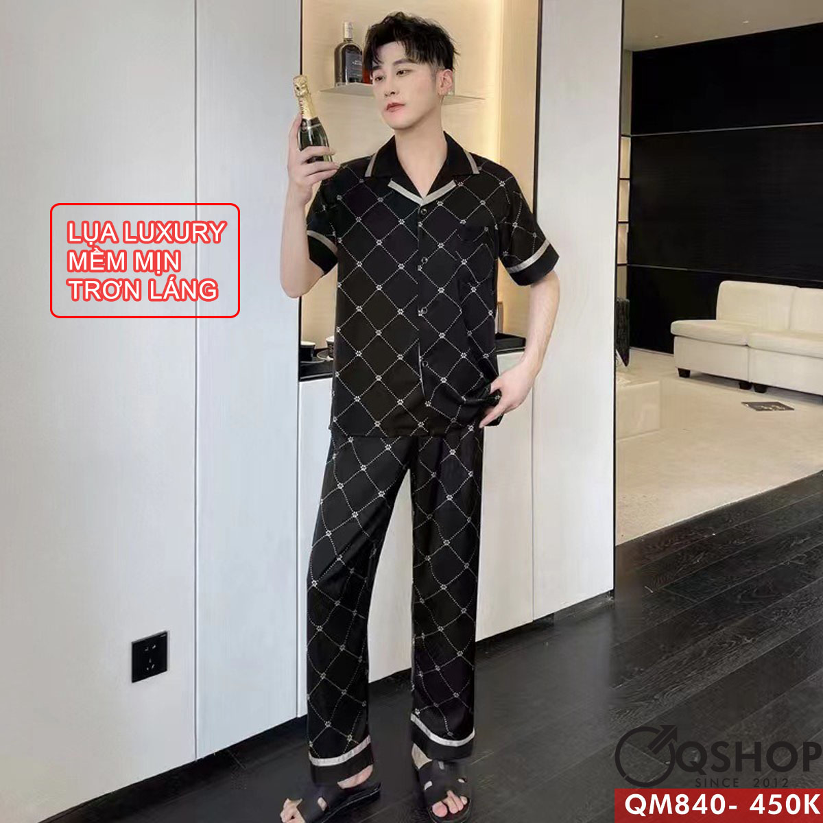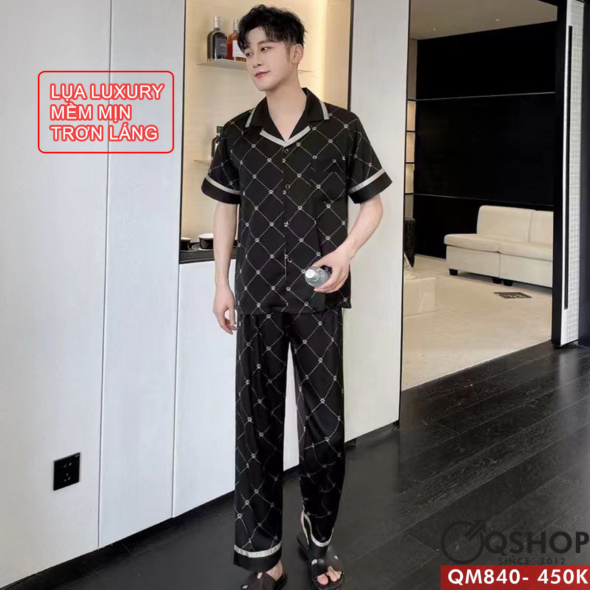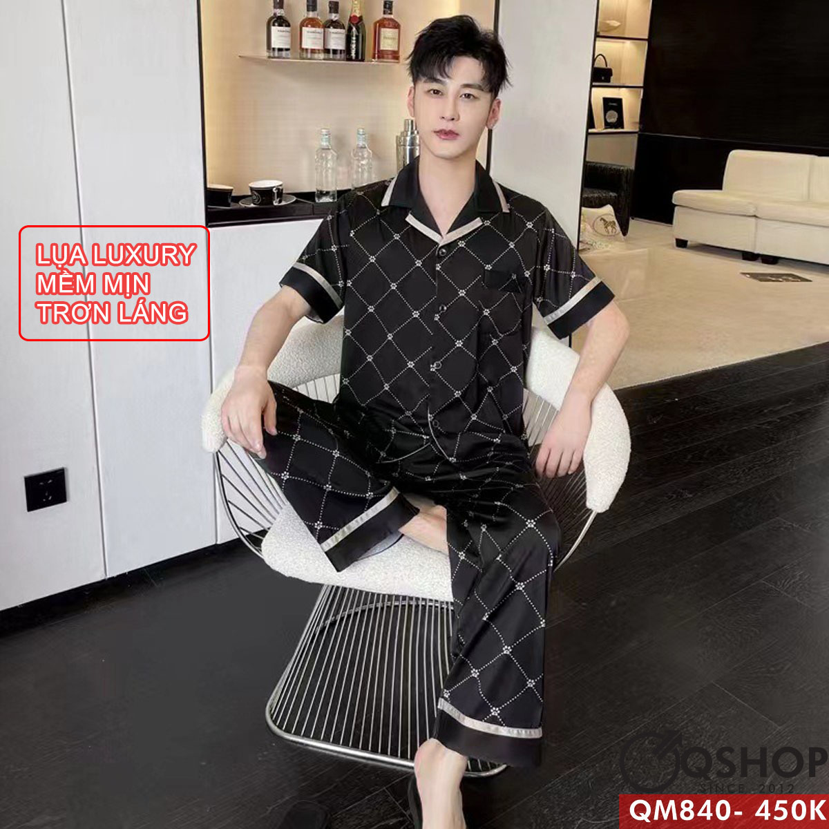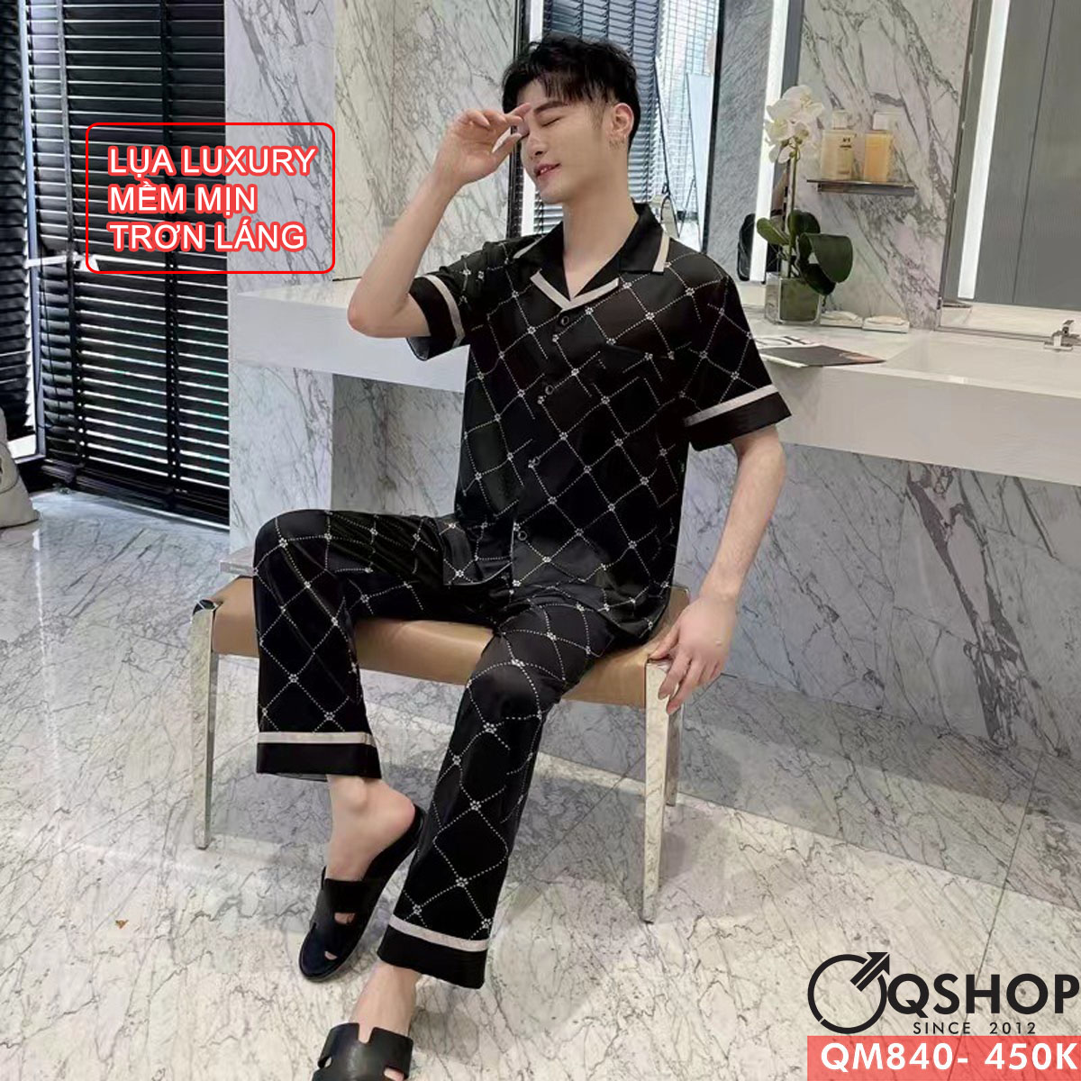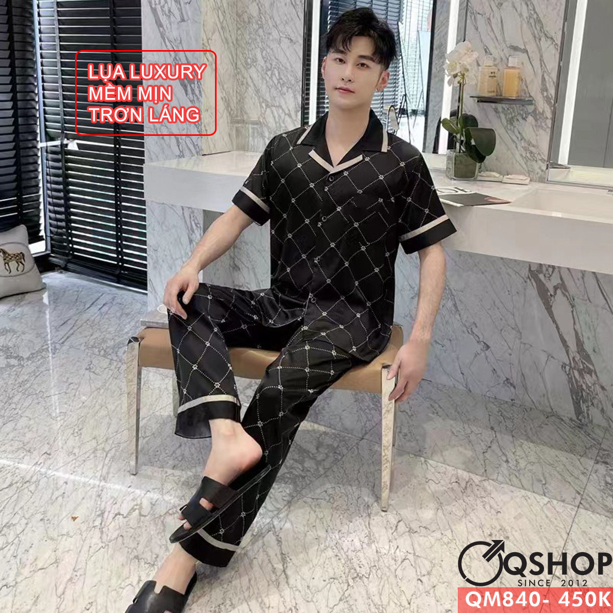 Bộ pijama nam tay ngắn quần dài lụa Luxury cao cấp mặc nhà mặc ngủ thoải mái QM840