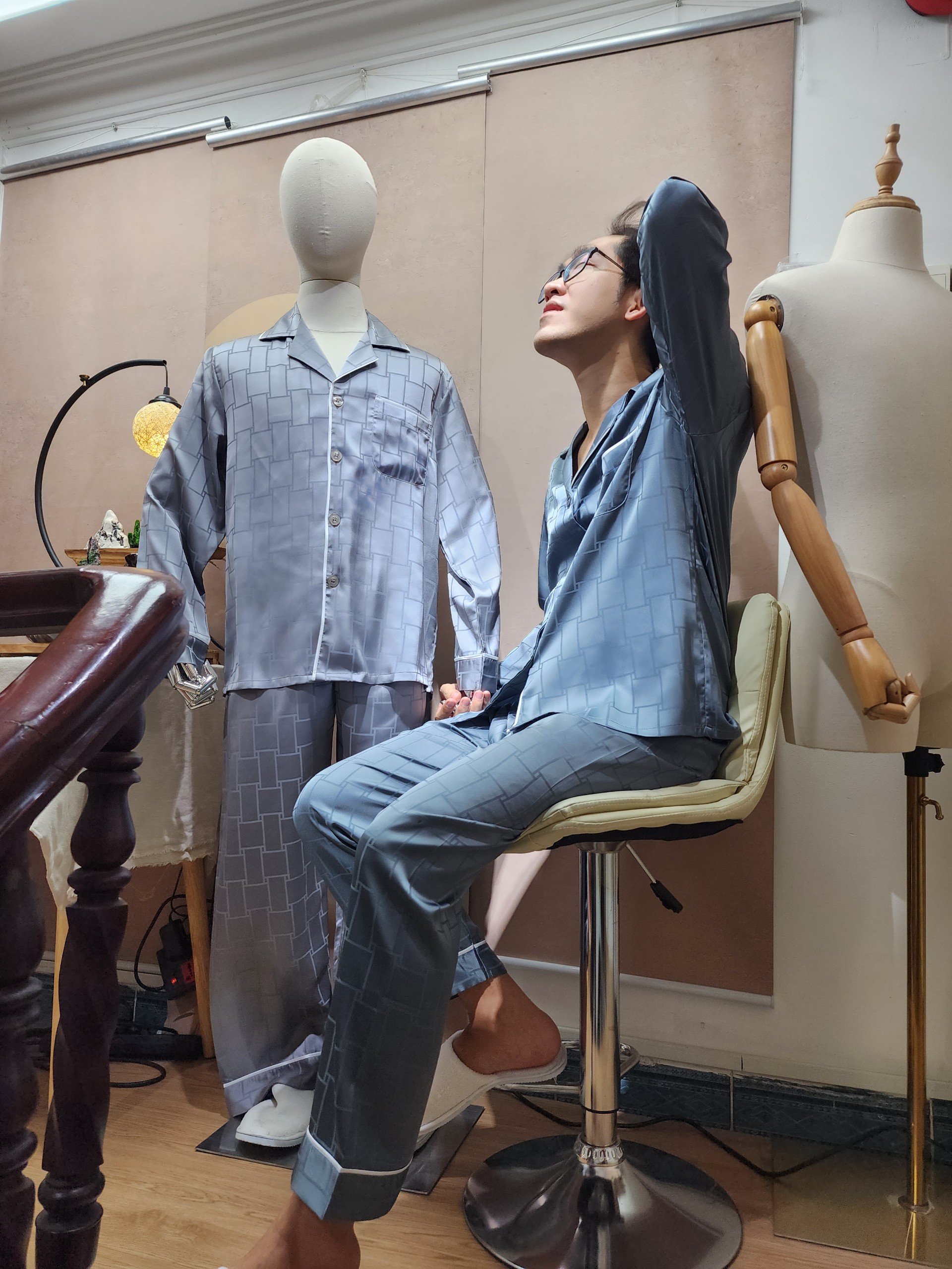 Bộ pijama nam tay dài lụa Luxury cao cấp mặc nhà mặc ngủ thoải mái QM861
