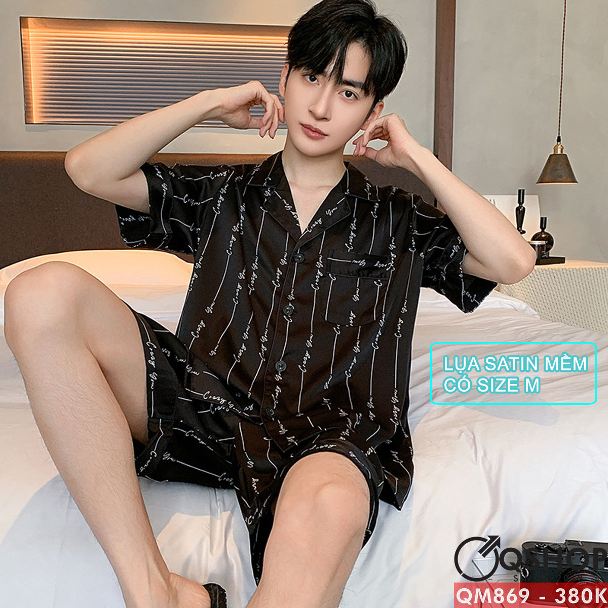 Bộ đồ ngủ pijama nam quần ngắn tay ngắn lụa satin mềm mặc nhà mặc ngủ thoải mái QM869