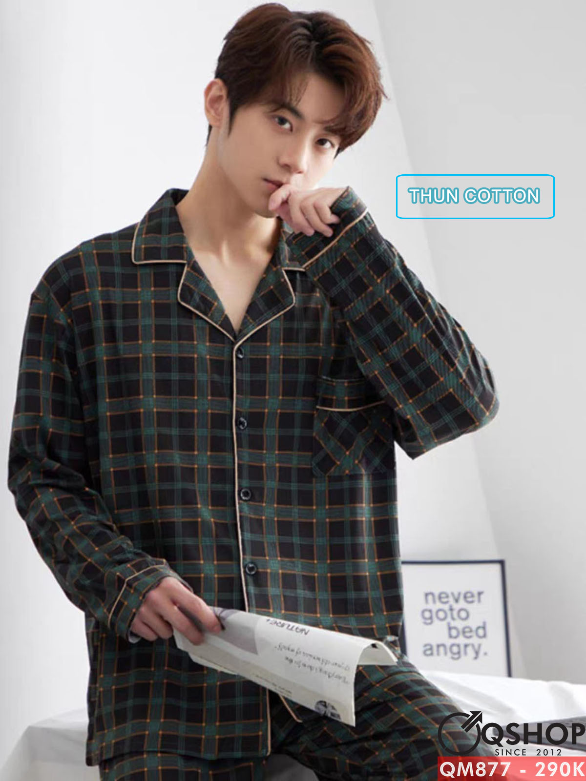 Bộ đồ pijama nam thun cotton thời trang quần dài tay dài QM877